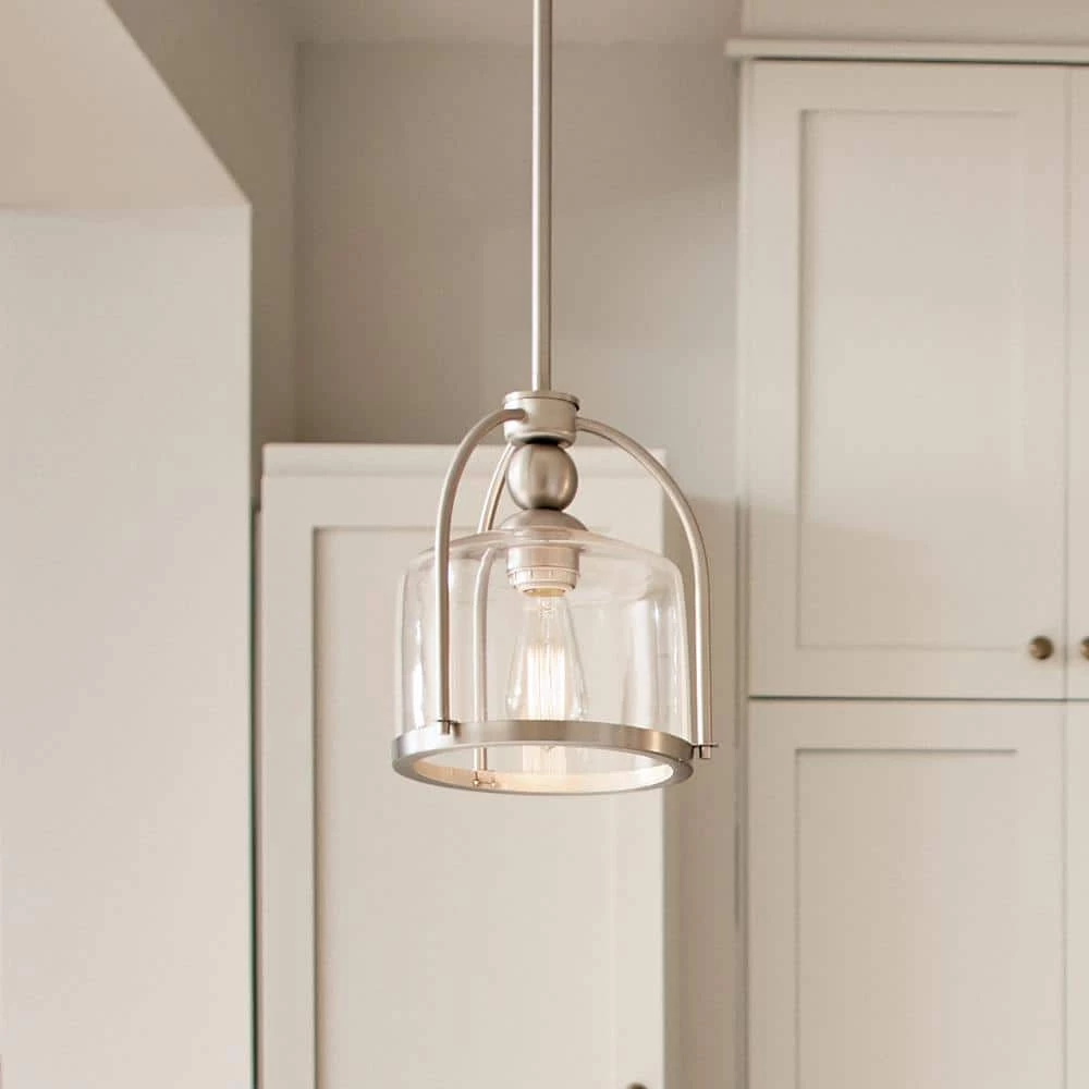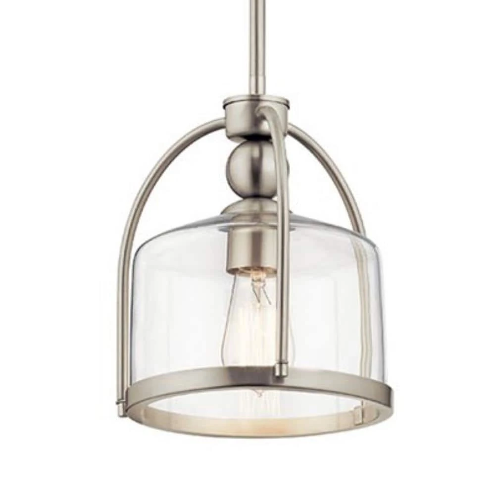 The Kichler 9.5 in. 1-Light Brushed Nickel Mini Pendant Light is a sleek and modern addition to your space. Featuring a clear glass shade, the pendant light provides even illumination to your space. It is made of high-grade steel to ensure extended, worry-free use. This pendant light from Kichler is an excellent addition to your dining room, living room, bedroom, and more.