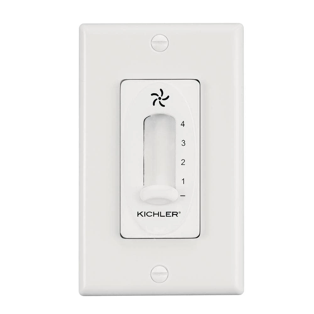 The KICHLER White 4-Speed Ceiling Fan Slide Control helps regulate the air circulation in your room as per your requirements. It comes with a faceplate that provides a seamless, flush installation. Featuring a white finish, this ceiling fan slide control blends well with your existing decor.