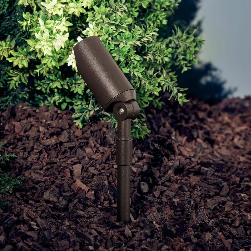 KICHLER’s 6 in. Mini MR16 Accent Fixture in Textured Architectural Bronze shines upward to illuminate trees, statuary and textured surfaces for dramatic, attention-getting visuals. Customize color temperature (CCT), beam angle, wattage and lumen output based on the LED bulb selection. The 12V low voltage drop-in fixtures are compatible with a wide selection of Professional and Contractor Series LED Lamps and are a great economical choice for any design application.