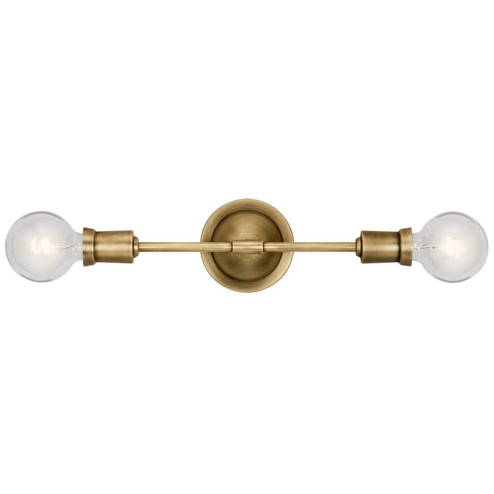 The KICHLER Armstrong 5 in. Natural Brass Wall Sconce is designed to uplift the look of your contemporary or mid-century modern space. Featuring a unique sputnik design with bulbs on both sides, this wall sconce provides radiance to your living room, hallway, bathroom or more. It is made of robust steel that ensures durability and minimized maintenance. You can install this wall sconce vertically or horizontally on a wall or ceiling according to your preference.