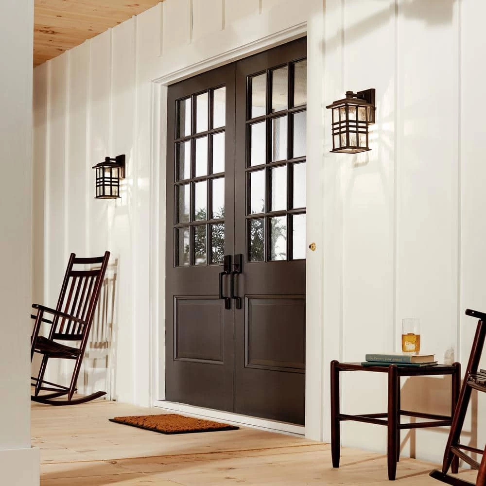Enhance the visual appeal of your space with the Kichler Beacon Square 12 in. 1-Light Olde Bronze Outdoor Wall Light. Its elegant design draws inspiration from classic craftsman architecture. This outdoor wall light features a clear hammered glass diffuser that provides bright, ambient illumination. It is made of EPMM that resists harsh elements such as UV rays and saltwater sprays, ensuring minimized maintenance.