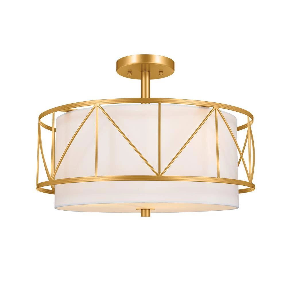 - The 18 inch Birkleigh convertible pendant/semi flush with white fabriuc shade and satin etched glass in Classic Gold finish offers a unique geometric pattern that adds dimension and visual interest to any room