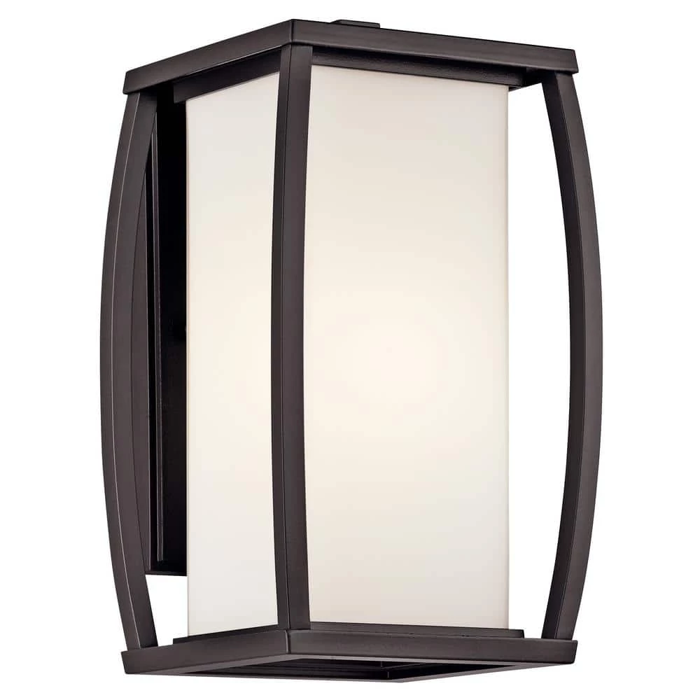 Enliven your outdoor space with this elegant KICHLER Bowen 13 in. 1-Light Architectural Bronze Outdoor Wall Light. Fitted to its sturdy frame is a satin etched opal glass shade that offers a soft ambient glow. Its architectural bronze finish gives your decor a touch of rustic elegance.