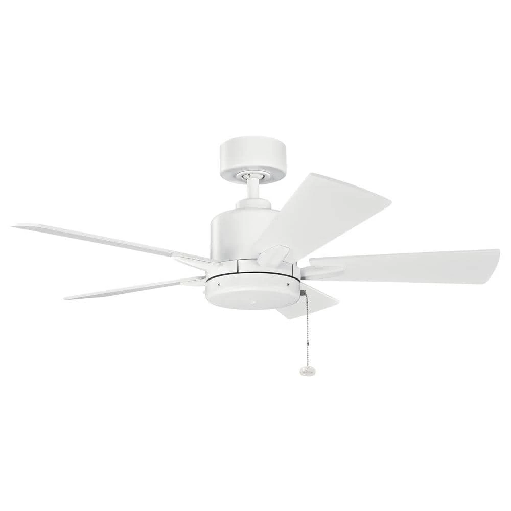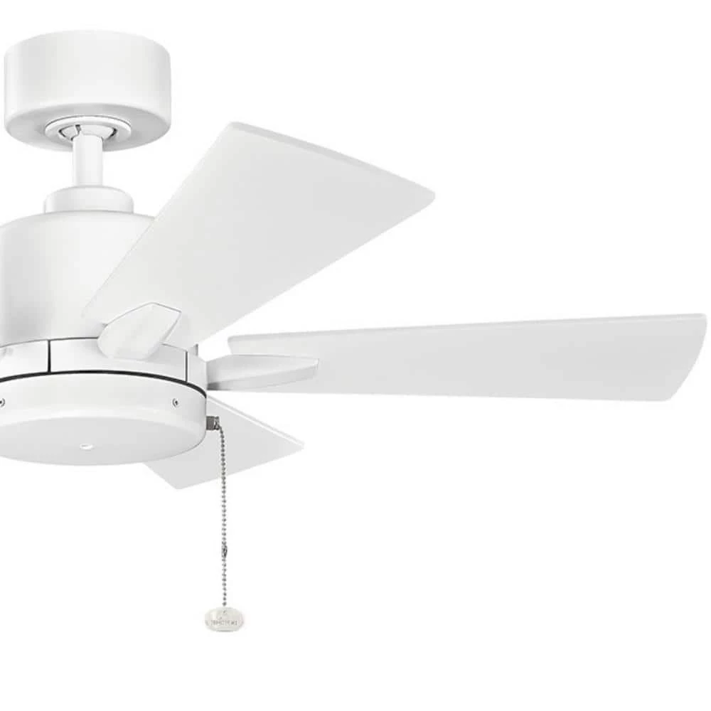 Enhance the visual appeal of your space with the KICHLER Bowen 42 in. Matte White Fan. Its transitional design and attractive matte white finish add a touch of style touch to your existing decor. This ceiling fan has a pull chain that allows for convenient operation. with its durable steel construction, this fan from KICHLER ensures years of worry-free use. This indoor fan is CSA UL listed for use in dry locations, making it an ideal addition to your dining room, living room, bedroom, and more.