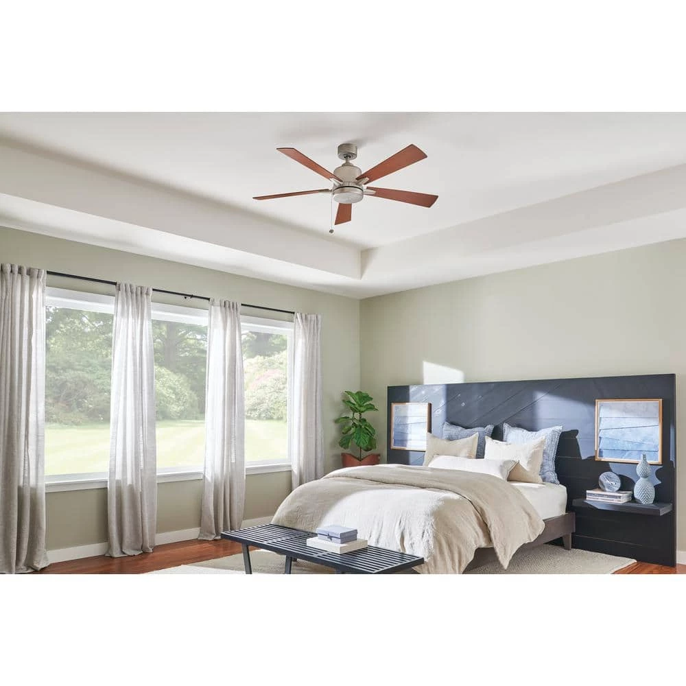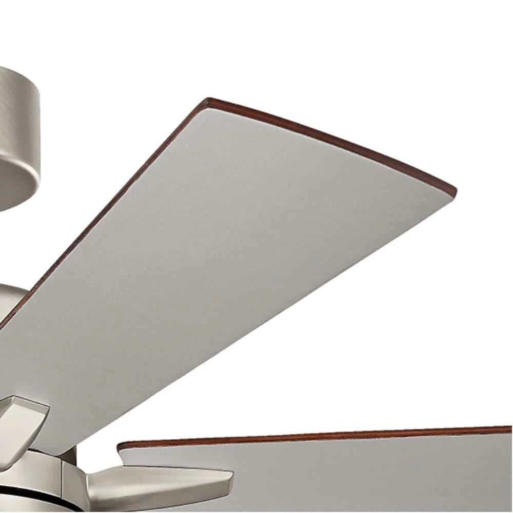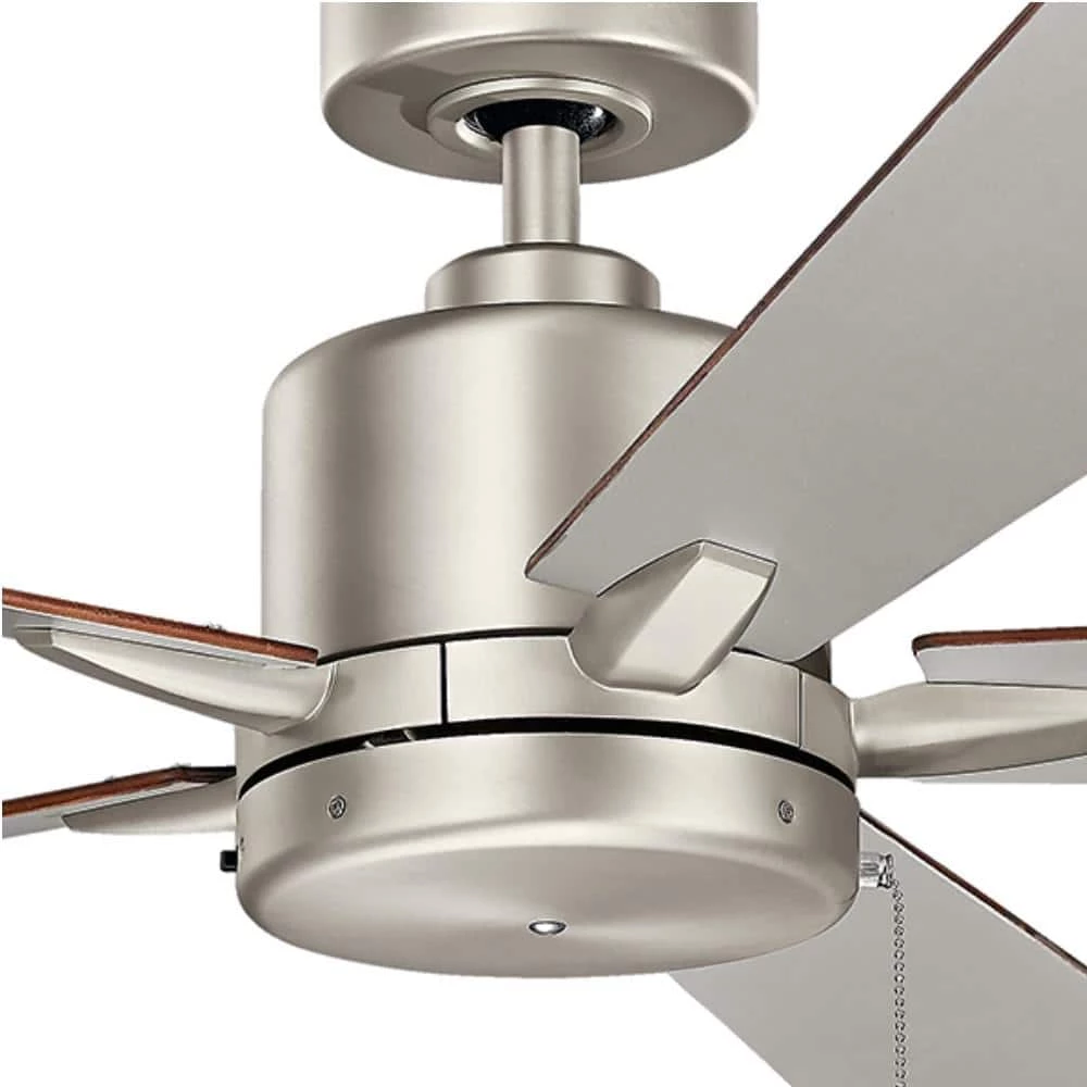 Enhance the visual appeal of your space with the KICHLER Bowen 52 in. Brushed Nickel Fan with Reversible Walnut and Silver Blades. Its transitional design and attractive brushed nickel finish add a touch of style touch to your existing decor. This ceiling fan has a pull chain that allows for convenient operation. with its durable steel construction, this fan from KICHLER ensures years of worry-free use. This indoor fan is CSA UL listed for use in dry locations, making it an ideal addition to your dining room, living room, bedroom, and more.