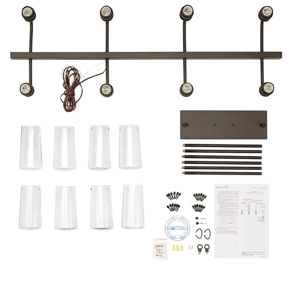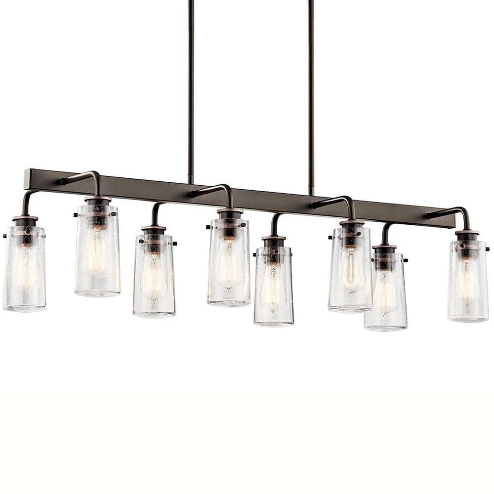 The Kichler Braelyn 11.25 in. 8-Light Olde Bronze Chandelier with Clear Seeded Glass elevates the look of your interiors. It features a vintage industrial design that offers an enhanced visual appeal. The clear seeded glass shades provide optimum lighting to add a radiant glow to your kitchen table or island, or dining table. With its attractive bronze finish, this chandelier blends well with rustic and country-style decor.