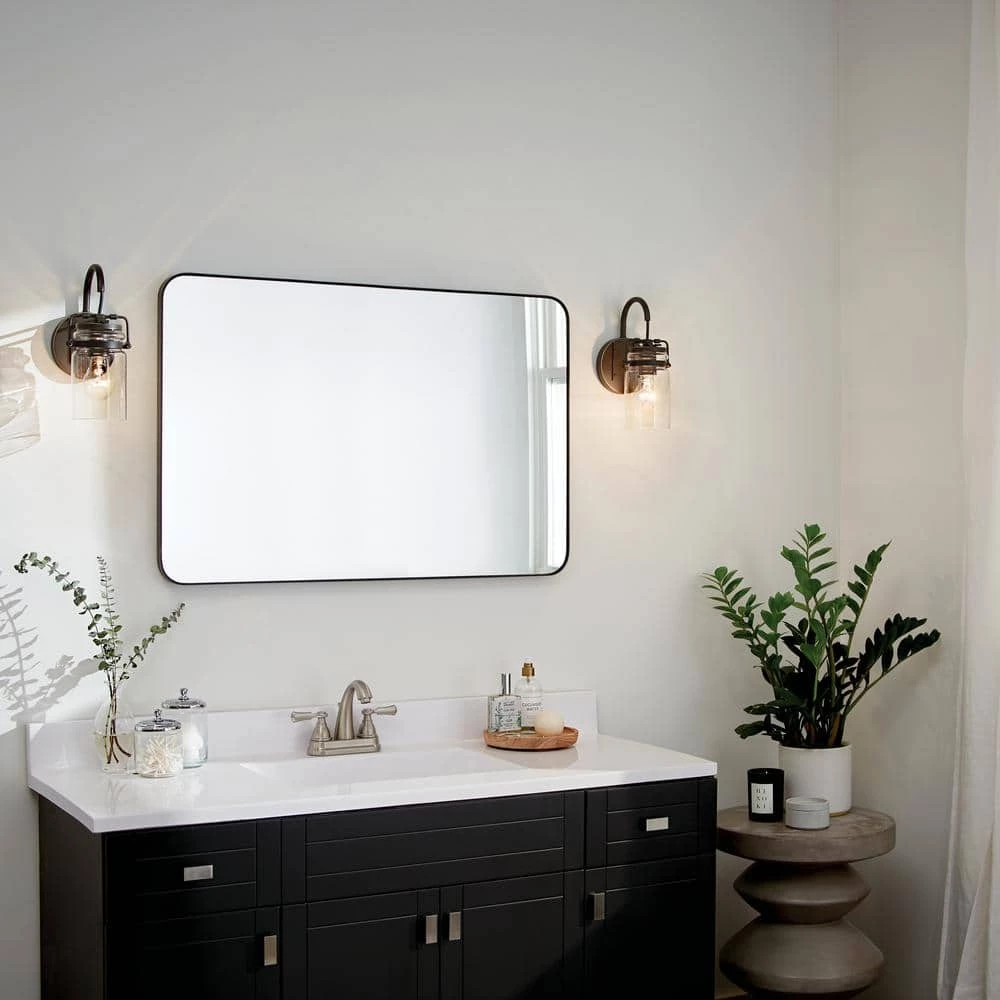 The KICHLER Brinley 11.5 in. 1-Light Olde Bronze Wall Sconce, with its exquisite design inspired by mason jars, is sure to enliven your home decor. This wall sconce has a clear glass shade that provides bright, even illumination. This sconce from KICHLER has a high-quality steel construction to enable long-term use. It features a water-resistant finish and galvanized undercoating that further add to its durability. This wall light makes for an ideal addition to your living room, dining room, bedroom and more.