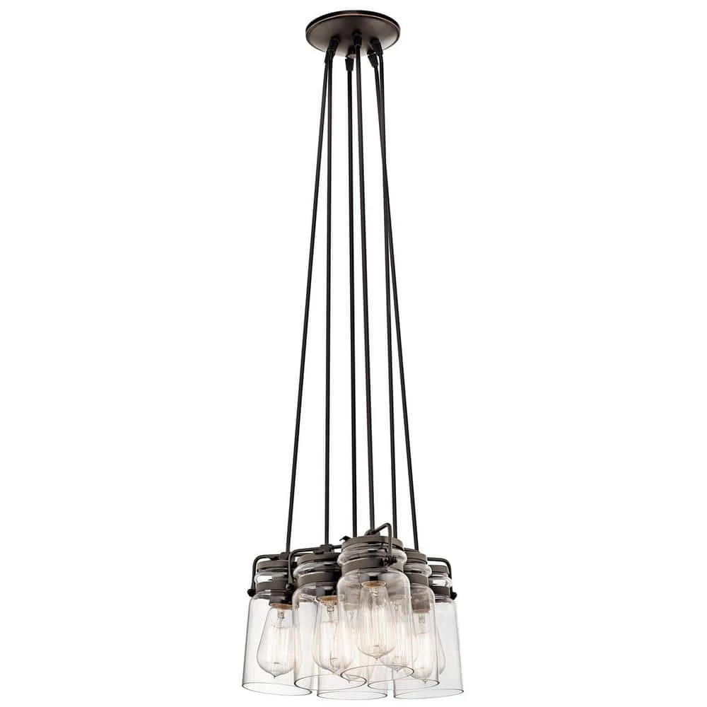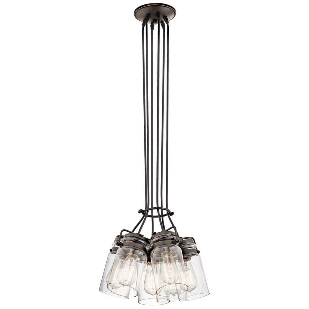 The KICHLER Brinley 7.75 in. 6-Light Olde Bronze Pendant Light has a unique transitional-style design inspired by mason jars. Its steel frame ensures durability while the glass shade allows for even distribution of light. This pendant light from KICHLER makes for an ideal choice to light up your home or office space.