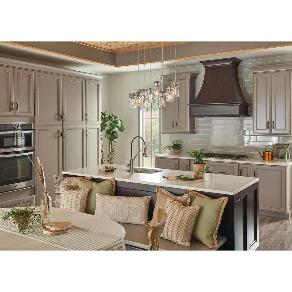 Add a radiant charm to your space with the Kichler Brinley 25.5 in. 8-Light Brushed Nickel Linear Chandelier. This fixture features a unique design inspired by mason jars for a unique look. The clear glass shades provide bright illumination to light up your room evenly. This exquisite chandelier from Kichler is sure to enhance the visual appeal of your living room, dining room, bedroom, and more.