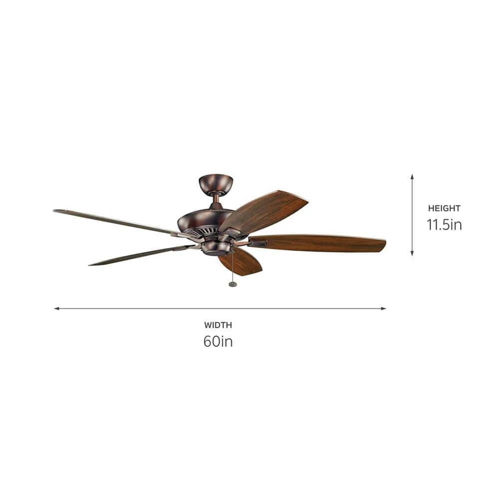 The Canfield XL 60 in. 5-Blade Oil Brushed Bronze Fan features a housing made of steel for strength and stability. It includes reversible cherry and walnut blades that provide custom styling options. The fan comes with a pull chain that provides convenient operation. It is also Energy Star-rated for efficient operation. This fan is sure to enhance the visual appeal of your decor.