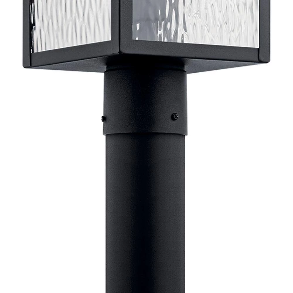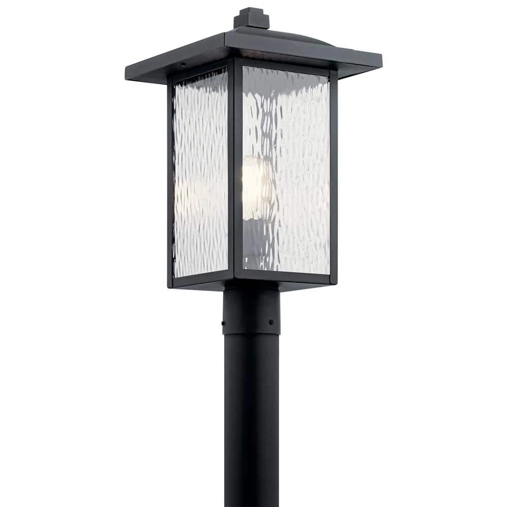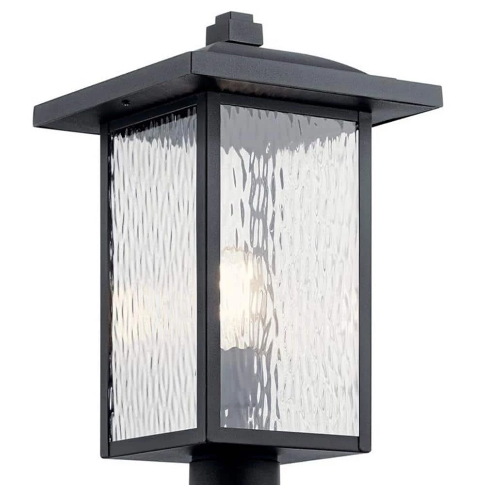 Brighten up your outdoor area with the KICHLER Capanna 1-Light Textured Black Post Light. This classic post light, with its textured black finish and capstone finial, is sure to accentuate your entryway. With the waterfall glass, the elements of the light work to create a look that blends well with modern and transitional decor styles.