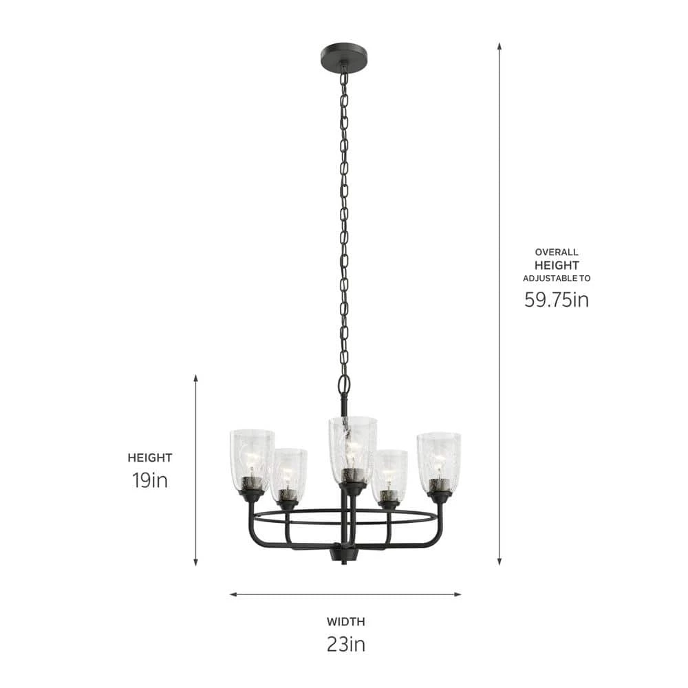 - With its wagon wheel shape, angular spinnings and seeded glass shades, the Carlo 5-light chandelier works best in transitional aesthetic environments23 in. 5-light chandelier with black finish combines the popular wagon-wheel shape with a classic 5-arm chandelier