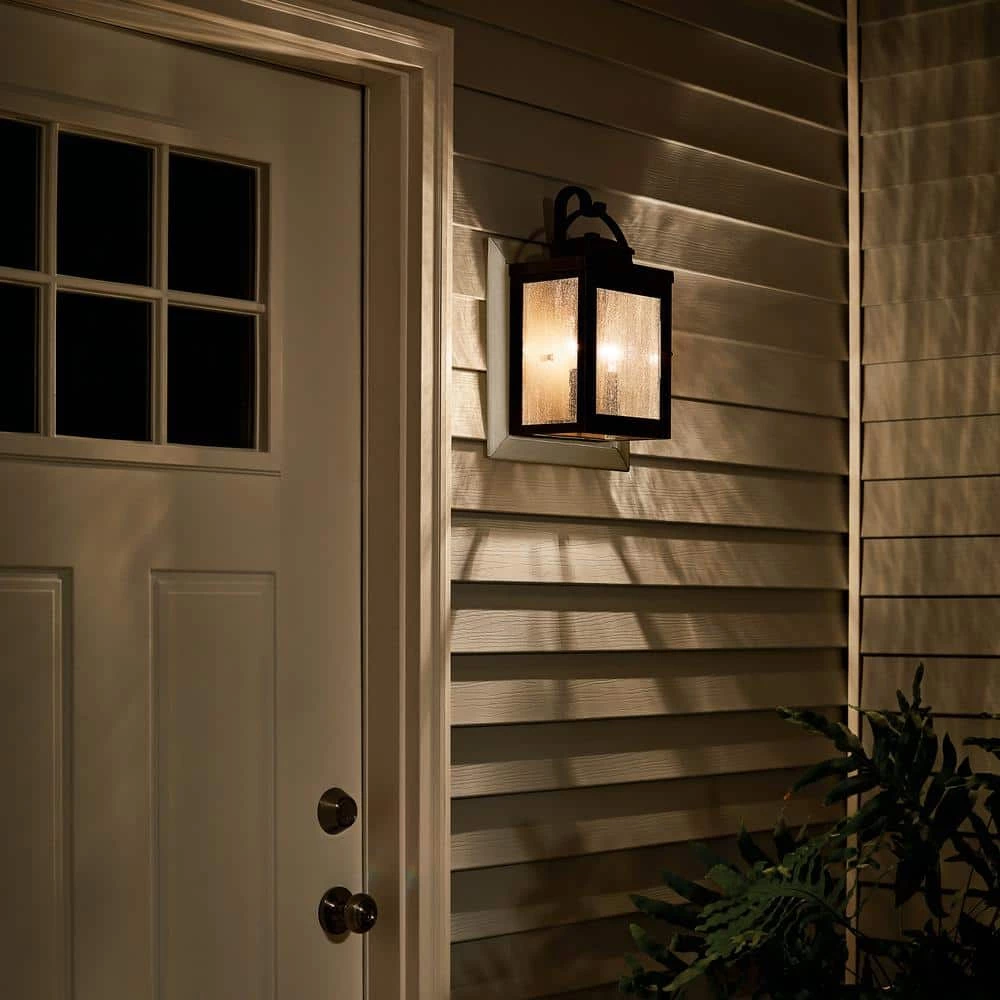 The KICHLER Carlson 14.75 in. Outdoor Wall Light with Clear Seeded Glass in Rubbed Bronze adds a radiant glow to your home decor. Made from aluminum, this wall light ensures resistance to corrosion and long-lasting durability. The highly durable finish of this light can withstand exposure to elements like rain, snow, and direct heat from the sun. The vintage-style wall light makes for an elegant lighting solution for your entryway, porch, or patio.