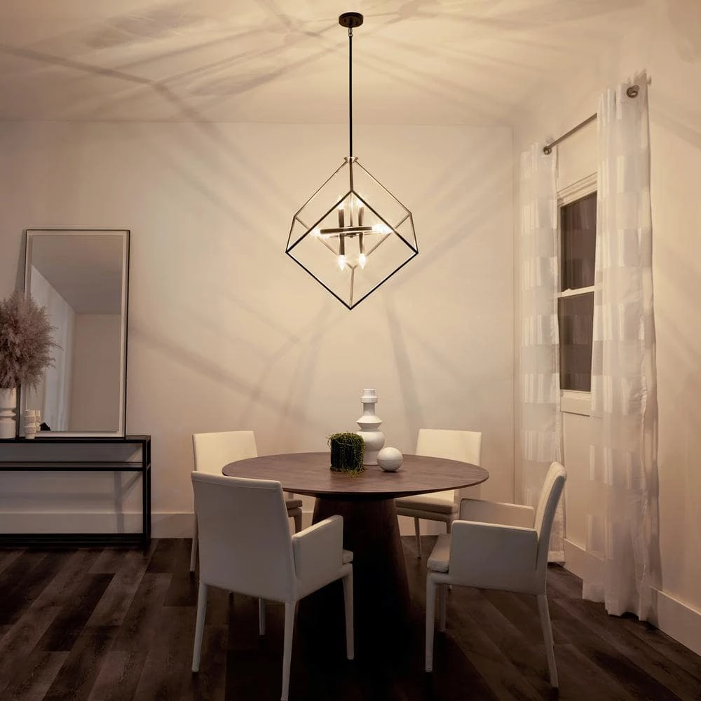 The KICHLER Cartone 31.25 in. 8-Light Pendant has an attractive Olde Bronze finish that complements most types of decor. Featuring an asymmetrical design, this pendant light creates a distinctive light pattern to accentuate your decor. It is crafted of premium steel to enable years of reliable use. This KICHLER pendant light is ideal for use in dry locations, making it an excellent addition to your kitchen island, dining space and more.