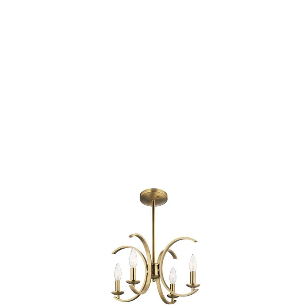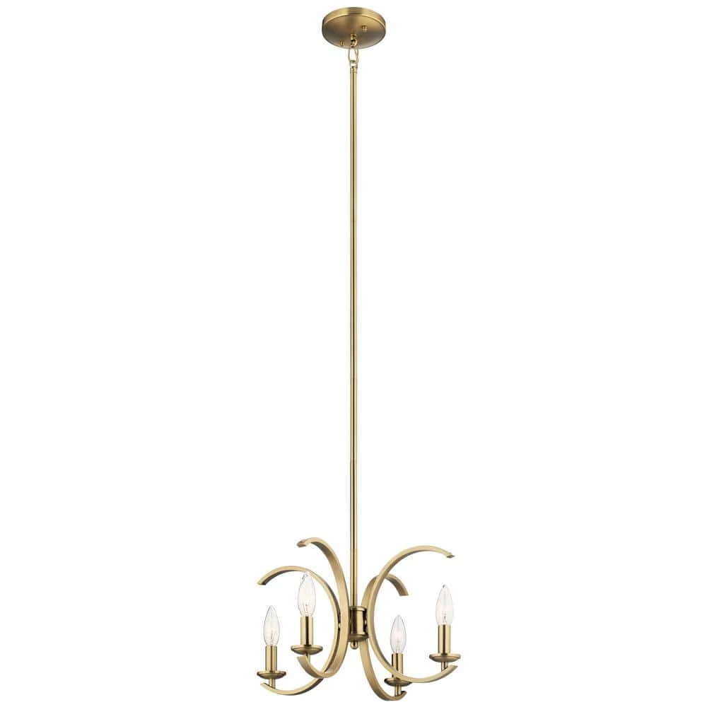The KICHLER Cassadee 16 in. 4-Light Brushed Natural Brass Convertible Pendant/Semi Flush Light is a versatile match for most rooms thanks to its contemporary design. This fixture can be used as a semi-flush ceiling light or as a pendant light depending on your preference. The durable steel construction of this pendant light ensures worry-free use. It is ideal for illuminating your dining room, living room, bedroom and more.