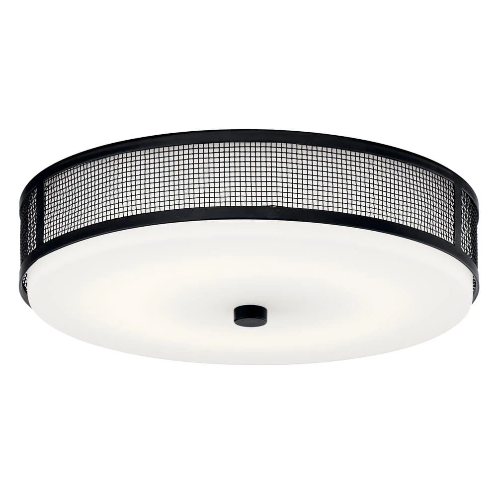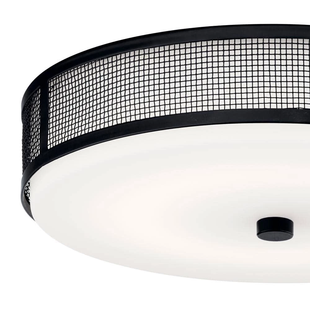 This beautiful LED flush mount features clean lines and a crisscross metal cage. Coordinates with black accents in hardware, mirrors, picture frames and architectural elements. The Black finish pops against exposed brick, concrete and steel element in minimal, uncluttered spaces.