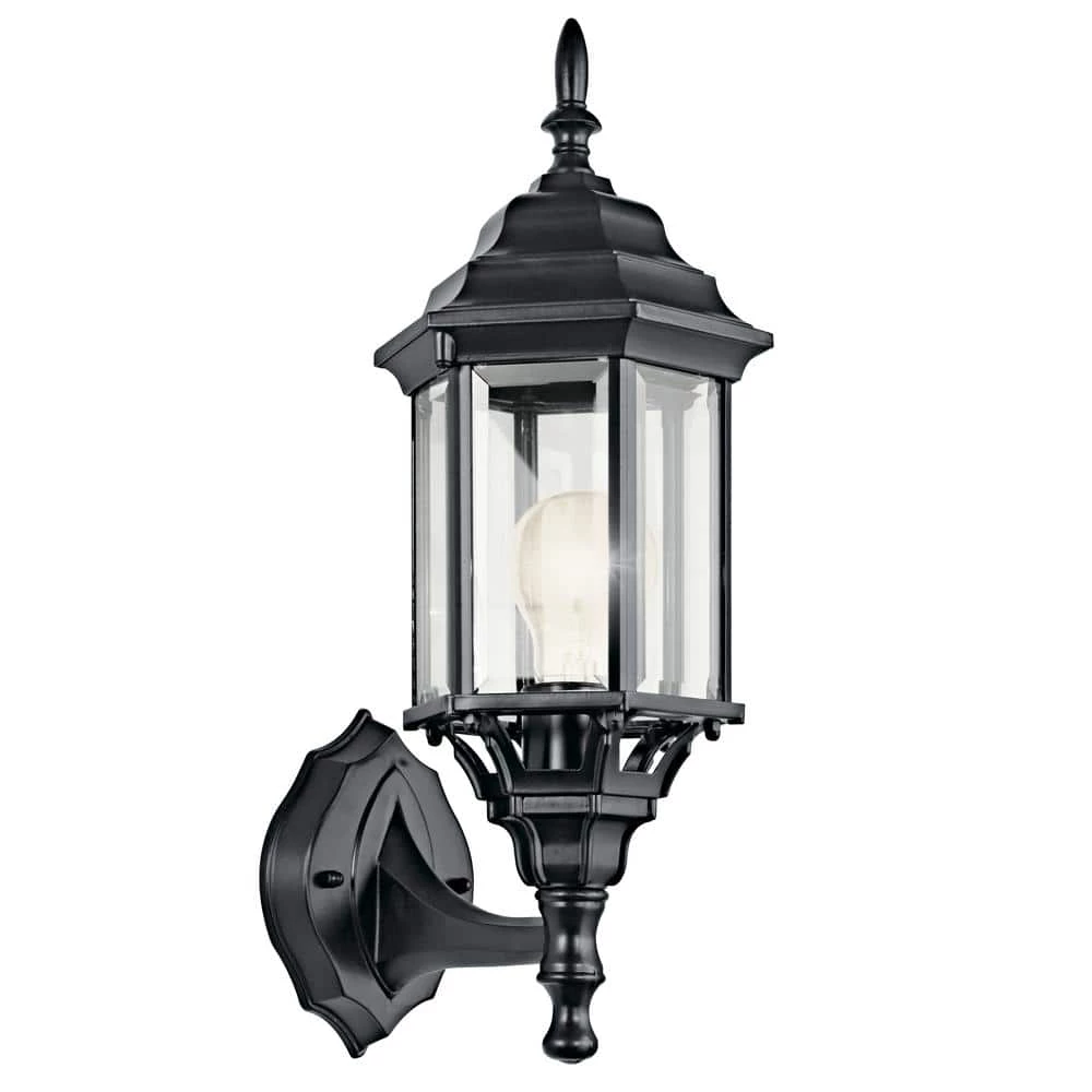 Add a coastal vibe to your outdoor space with this graceful Kichler Chesapeake 17 in. 1-Light Black Outdoor Wall Light. It features clear beveled glass panels that help illuminate your space evenly and make it look more inviting. Its durable aluminum frame sports a clean black finish that complements most styles of decor.