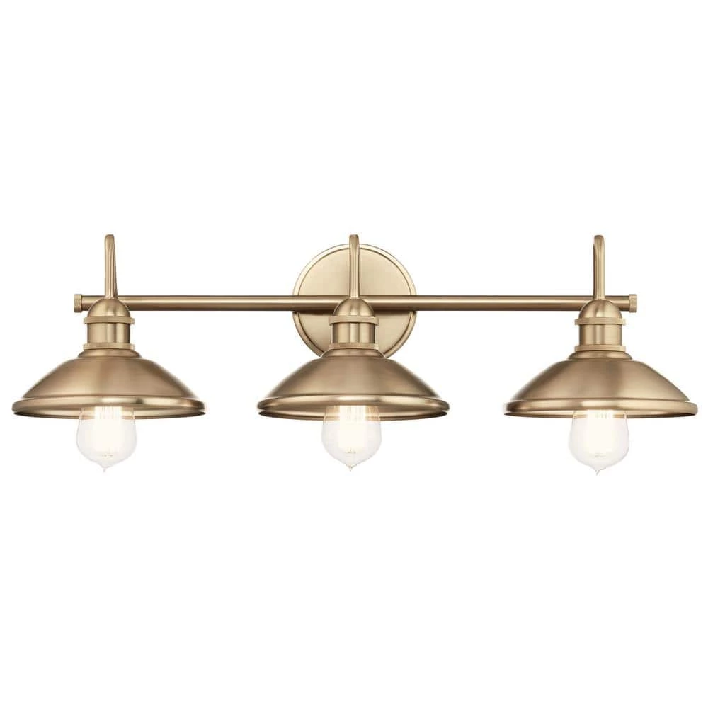 The Clyde 26.5 inch 3 light vanity light features an Champagne Bronze finish. The Clyde offers an industrial design with its vintage inspired socket and diamond knurl banding that is perfect with rustic, country, industrial and lodge decor. Add a splash of understated appeal with this simple, yet striking vintage industrial design.