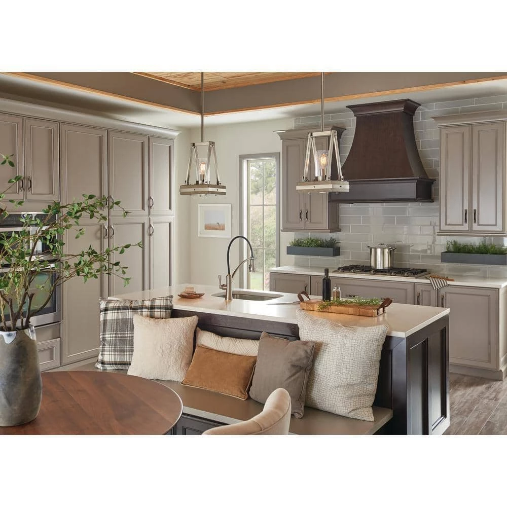 The KICHLER Colerne 16.5 in. 2-Light Classic Pewter Pendant Light features a vintage design and distressed metal accents that add a radiant charm to any type of decor. Its shade is made of clear seeded glass to cast a warm and relaxing glow. The downlight provides focused illumination to highlight a mirror or an art piece, while the uplight provides soft ambient glow to light up your space. Constructed of high-quality steel, this pendant light ensures years of reliable, worry-free use.
