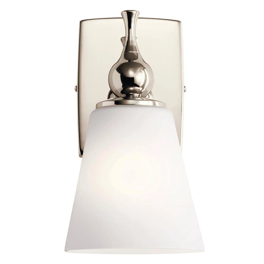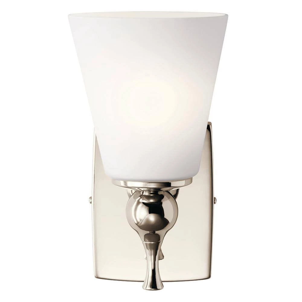The Cosabella collection is luxurious, soft and sophisticated. The collection’s cin.ed stem is reminiscent of a classic Mid-Century era silhouette and the Satin Etched Case Opal creates a calm and gentle glow. Influenced by the Danish clean and minimal approach, delicate curves and basic finishes make Cosabella the crown jewel of your stunning space. The Cosabella 6 in. 1-light wall sconce embodies Mid-Century modern minimalism. The Satin Etched Case Opal shade softens the light to a luxurious glow, as it hangs from a Polished Nickel cin.ed stem. The shade and wall plate curve delicately. Make your home an oasis of calm and enjoy.