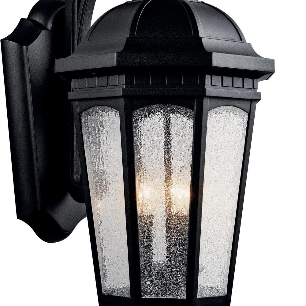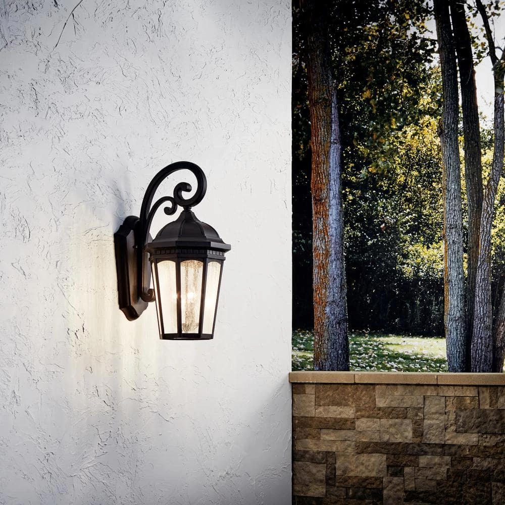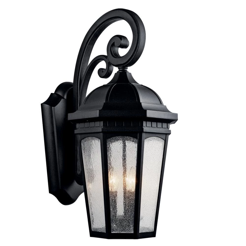 Add elegant lighting to your outdoor space with the KICHLER Courtyard 26.5 in. 3-Light Textured Black Outdoor Wall Light. The clear-seeded glass provides bright and even illumination while protecting the bulb from weather damage. Made from aluminum, this lamp ensures long-lasting durability and resistance to corrosion. The textured black finish of this wall light accentuates the visual appeal of any space.