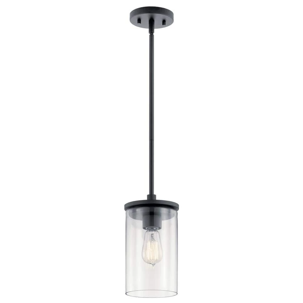 Spruce up your decor with the KICHLER Crosby 10.75 in. 1-Light Black Mini Pendant Light. Featuring clean lines and exquisite design, this pendant light perfectly complements your interiors. The shade is made of clear glass shade to provide bright illumination. This pendant light from KICHLER is crafted of superior quality steel for long-lasting use. It is suitable for illuminating your dining room, living room, bedroom and more.