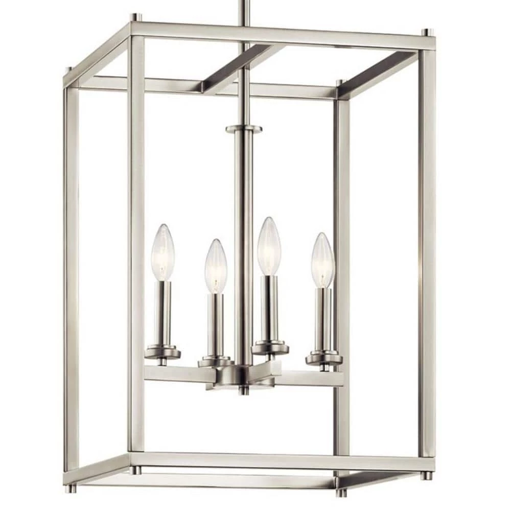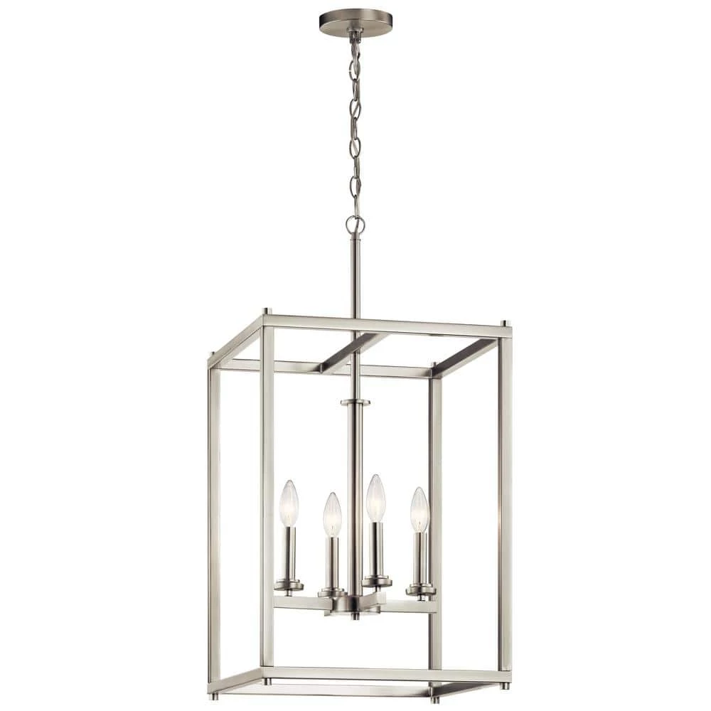 Enrich your decor with the KICHLER Crosby 31 in. 4-Light Brushed Nickel Foyer Pendant Light. Featuring clean lines and exquisite design, this pendant light perfectly complements your interiors. It is crafted of superior quality steel for long-lasting use. This attractive pendant light is suitable for illuminating your dining room and foyer.