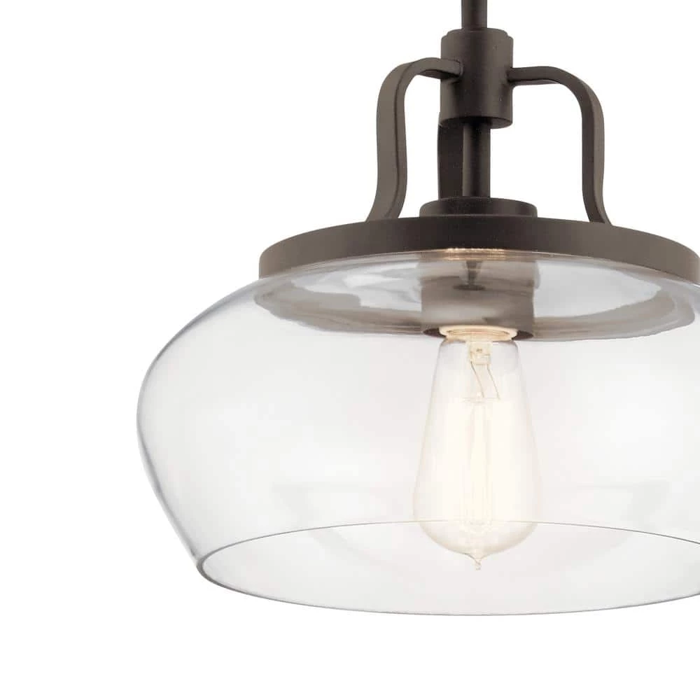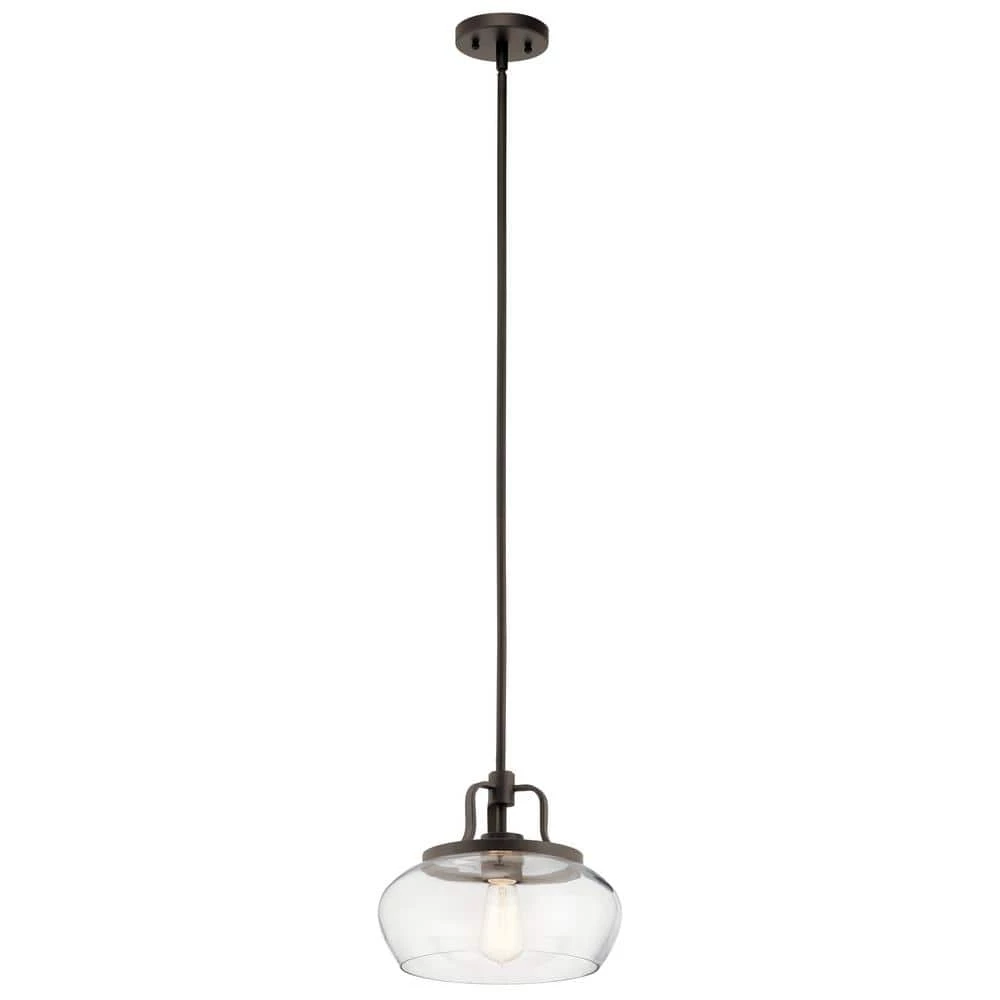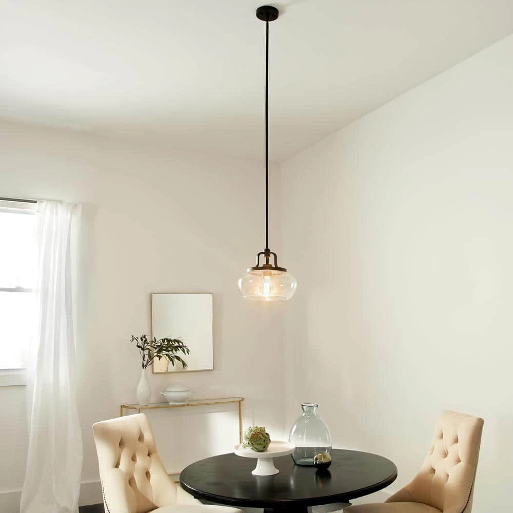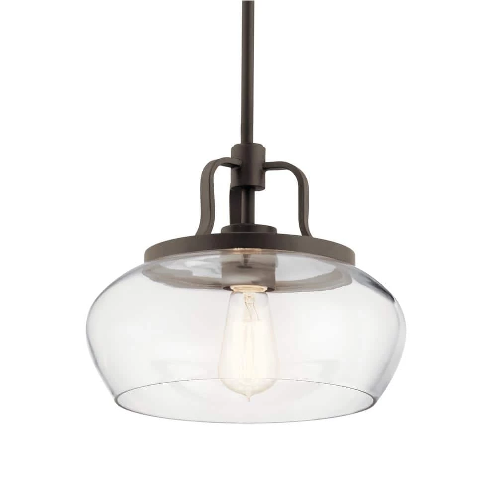Upgrade your space with the KICHLER Davenport 10.5 in. 1-Light Olde Bronze Convertible Pendant or Semi Flush Light. It has a clear glass shade that fills your room with a bright glow. This fixture can be used as a semi-flush ceiling light or as a pendant light depending on your preference. It is an excellent choice for your dining room, living room, bedroom and more.