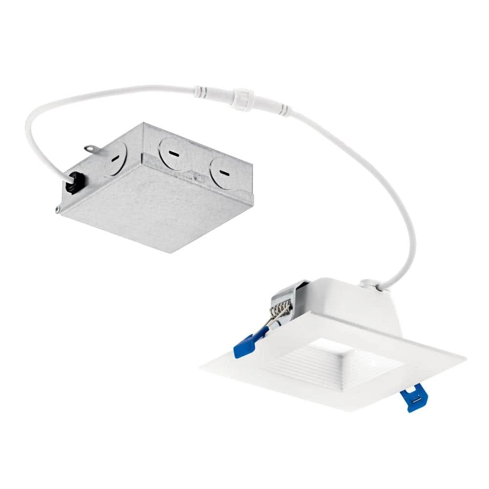 Our Direct-to-Ceiling (DtC) Square Recessed 30K LED Downlight is dimmable and features a baffle design for low glare and a uniform lit appearance. Ideal for residential use and-light commercial use, this 4 in. square downlight offers simple snap-in installation for improved job site efficiency. A tethered driver eliminates the need for a junction box, providing placement flexibility despite structural support.