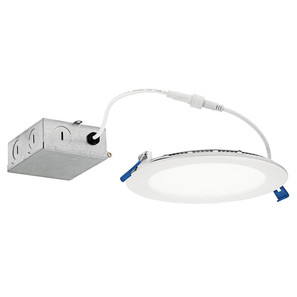Our Direct-to-Ceiling (DtC) Round Slim 27K LED Downlight is dimmable and equipped with edge-lit technology for low glare and a uniform lit appearance. Ideal for residential use and-light commercial use, this 6 in. round downlight features simple snap-in installation for improved job site efficiency. A tethered driver eliminates the need for a junction box, providing placement flexibility despite structural support.