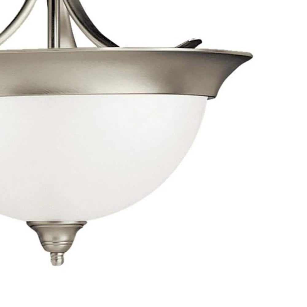 The KICHLER Dover 15.25 in. 3-Light Brushed Nickel Semi-Flush Light is ideal for your bedroom, foyer, kitchen and living room. It features a classic design that accentuates the visual appeal of your decor. This semi-flush light also has an etched seeded glass diffuser that provides soft illumination. It is made of hand-wrought steel for enhanced strength and durability.