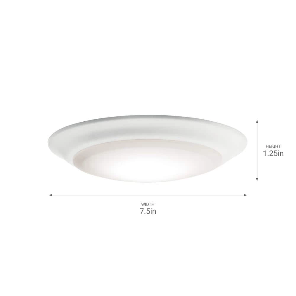 The KICHLER Gen I 7.5 in. 2700K LED White Flush-Mount Downlight features an energy-efficient LED lamp that is dimmable for precise brightness control. Its polycarbonate diffuser provides soft illumination. This flush-mount downlight accentuates the visual appeal of your room decor. It can be installed on any ceiling or wall.
