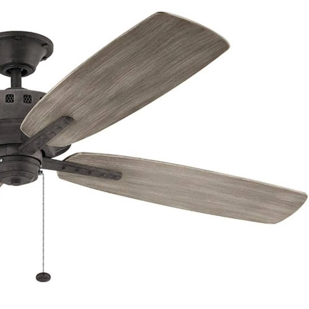 Add a vintage appeal to your home decor with the KICHLER Eads Patio XL 65 in. Weathered Zinc Fan. It is made from premium quality steel for long-term use. This ceiling fan features a zinc finish and weathered medium oak blades that give it a unique distressed look.