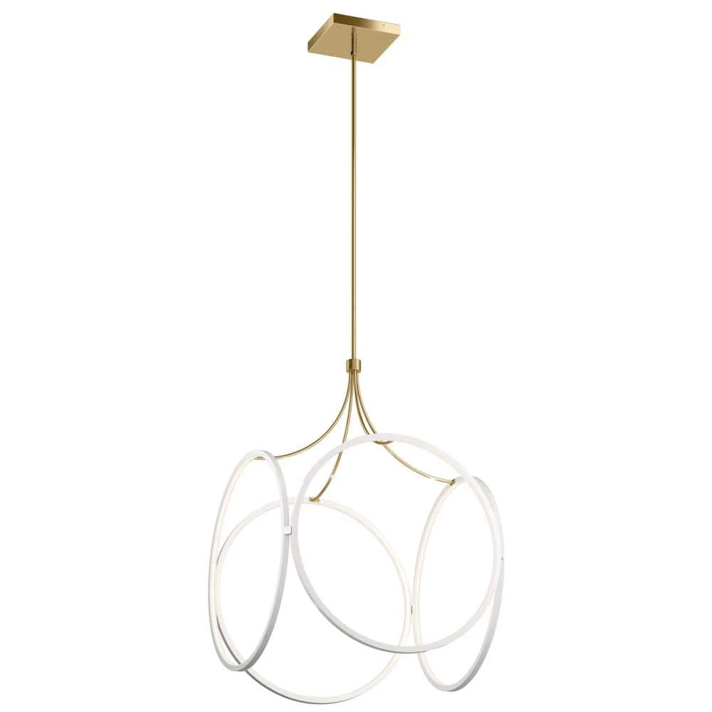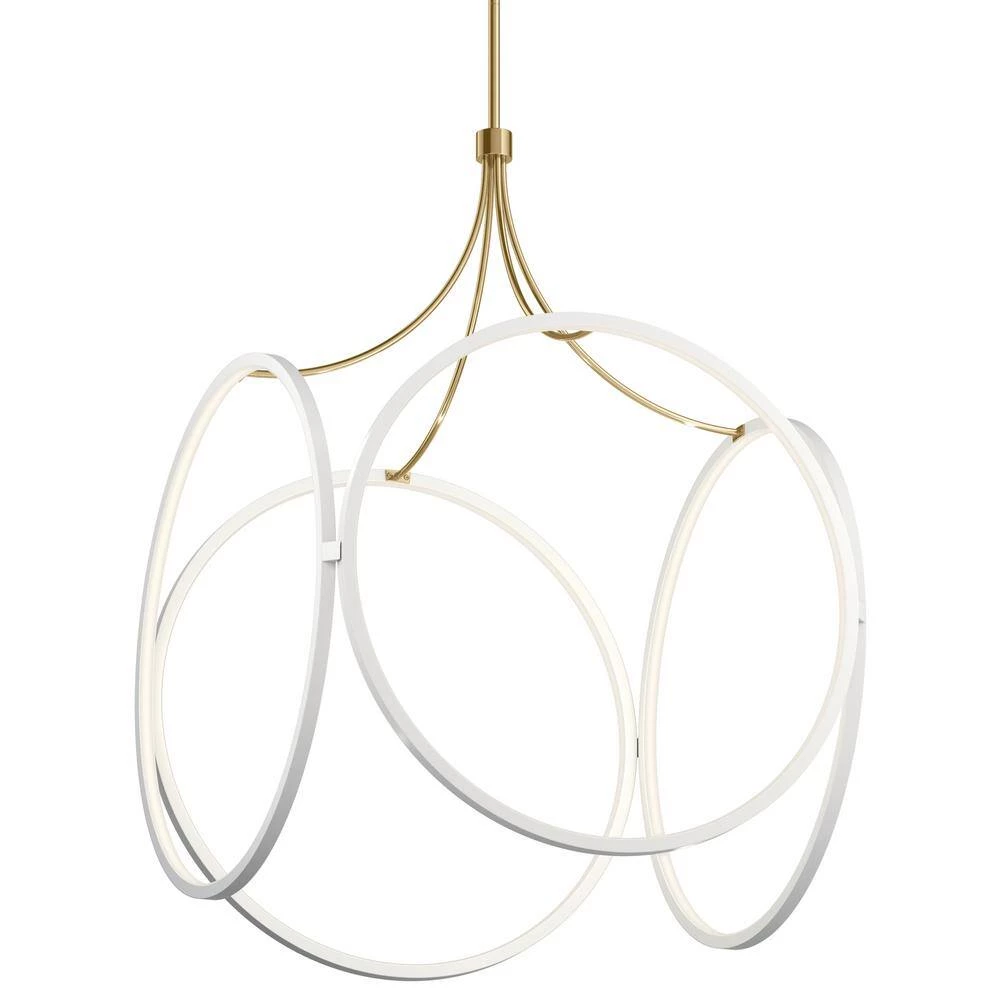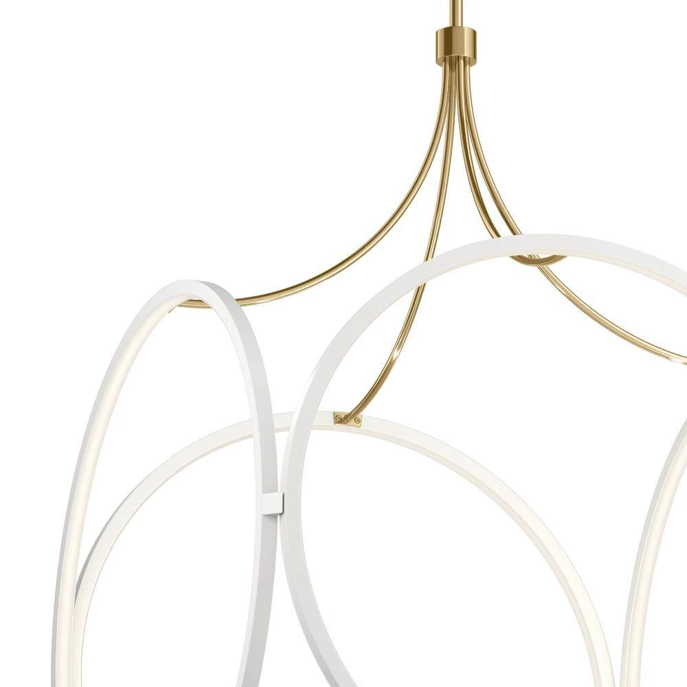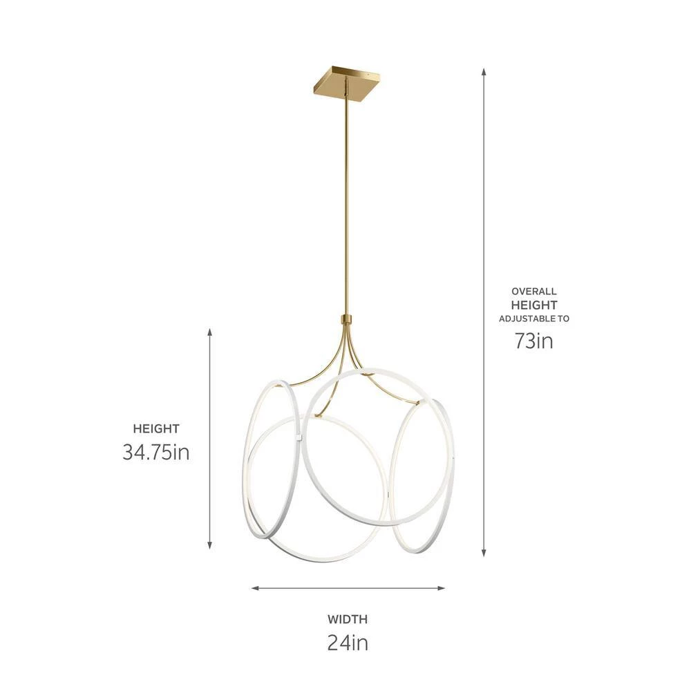 The Ciri 34.75 in. Large LED Pendant with White finish and Champagne Gold accent offers a soft-modern take on a classic cage-pendant. This contemporary collection features delicate circles of LED Lights that are hidden within the fixture, creating an invisible Light source that fills the circles with Light for an airy feel. This beautiful pendant pairs well with mid century, urban, retro and modern styles.
