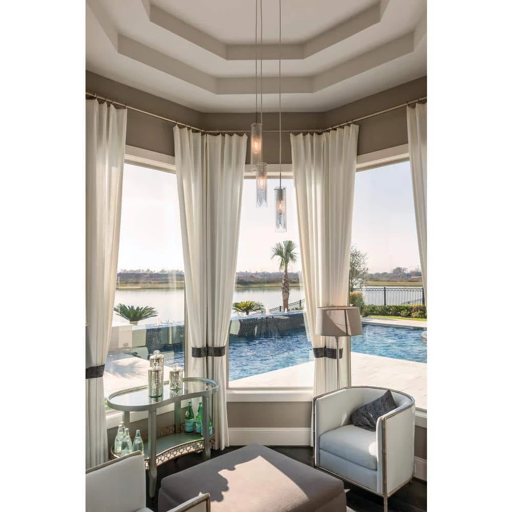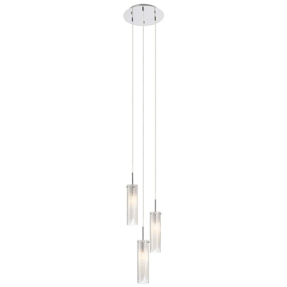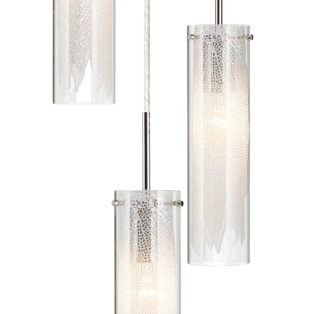 The KICHLER elan Krysalis 3-Light Chrome Spiral Pendant Cluster has a sleek, contemporary design that describes the silhouette of the light. It features white metal dragonfly wing-style filigree draped behind the clear glass shade, adding a radiant glow to your living space. The dimmable feature of this pendant light lets you control the brightness according to your needs.