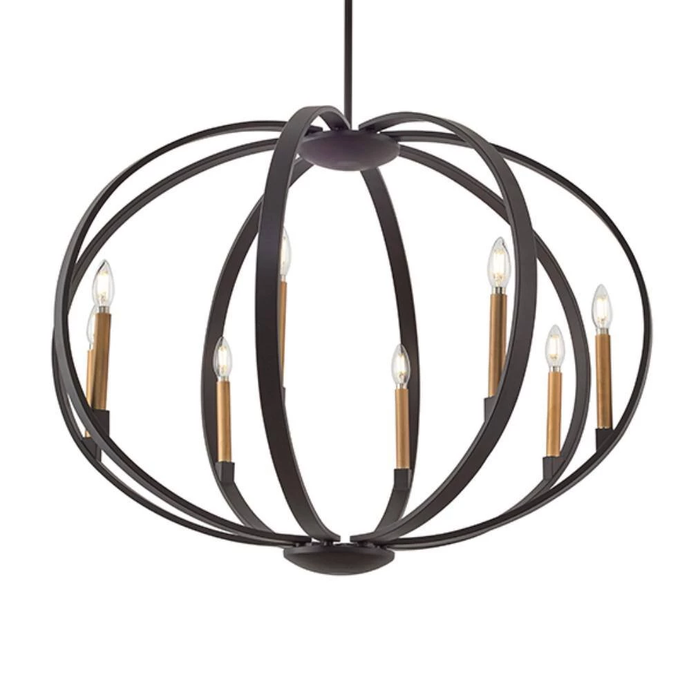 The Kichler Elata 26.25 in. 8-Light Chandelier features an orbital design with an Olde Bronze finish, which blends well with contemporary-style decors. Its durable steel construction ensures longevity and requires low maintenance. The chandelier holds eight incandescent E12 light bulbs to provide bright illumination. This minimalistic yet classy fixture is sure to accentuate your decor.