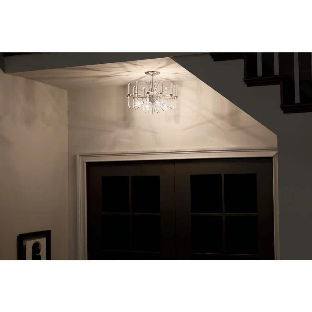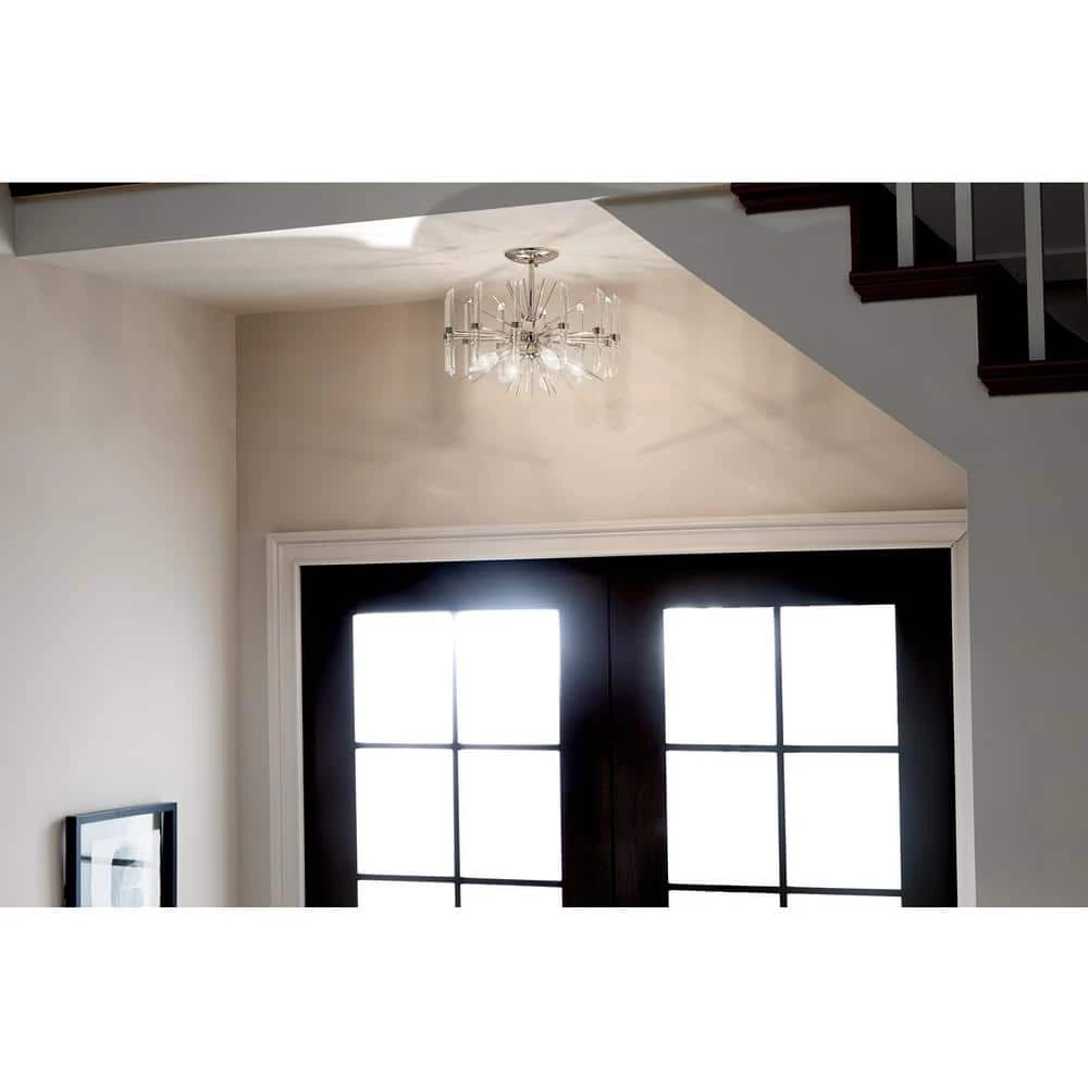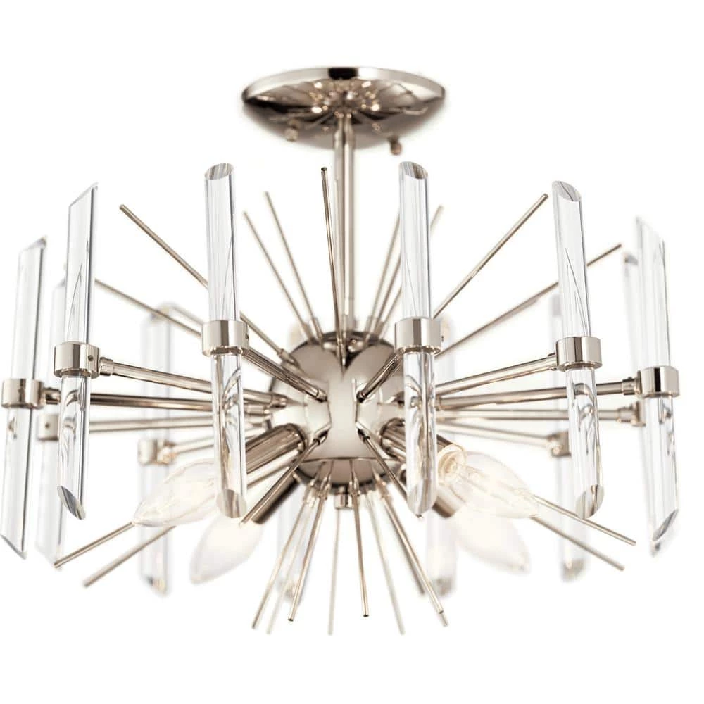 Enrich your decor with the KICHLER Eris 4-Light Polished Nickel Semi-Flush Light. It features a 1960’s inspired design with crystal accents for a unique look. With its K9 crystal diffuser, this semi-flush light provides ample ambient lighting to your room. This exquisite semi-flush light from KICHLER has a polished nickel finish that is sure to accentuate your living space.