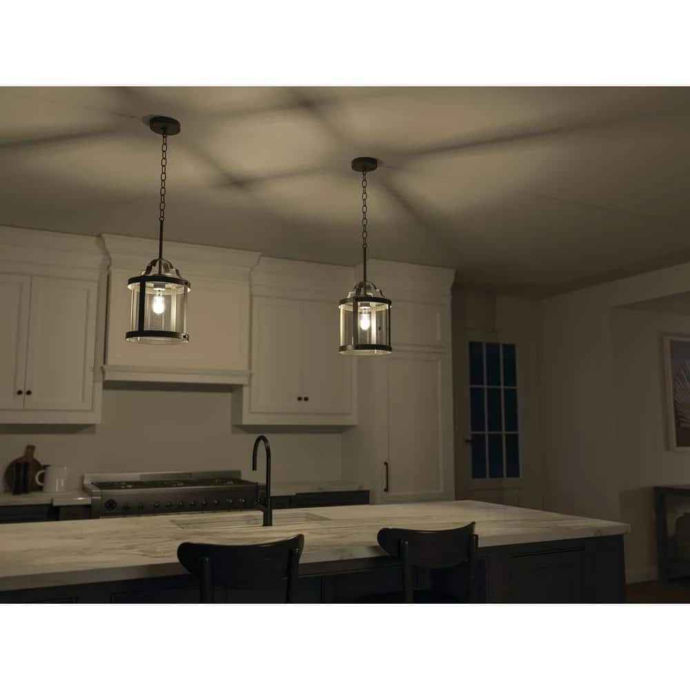 The Farona 1-light pendant features a Black finish and clear glass shade, blending traditional elements with modern touches for an updated traditional feel. This timeless piece works perfectly with a variety of decors and styles. Add in pairs over a kitchen island for a timeless look.