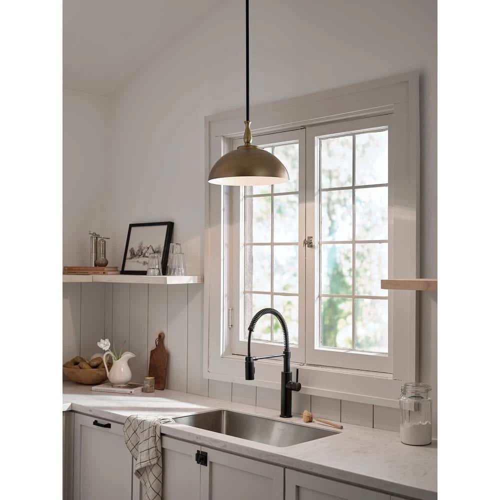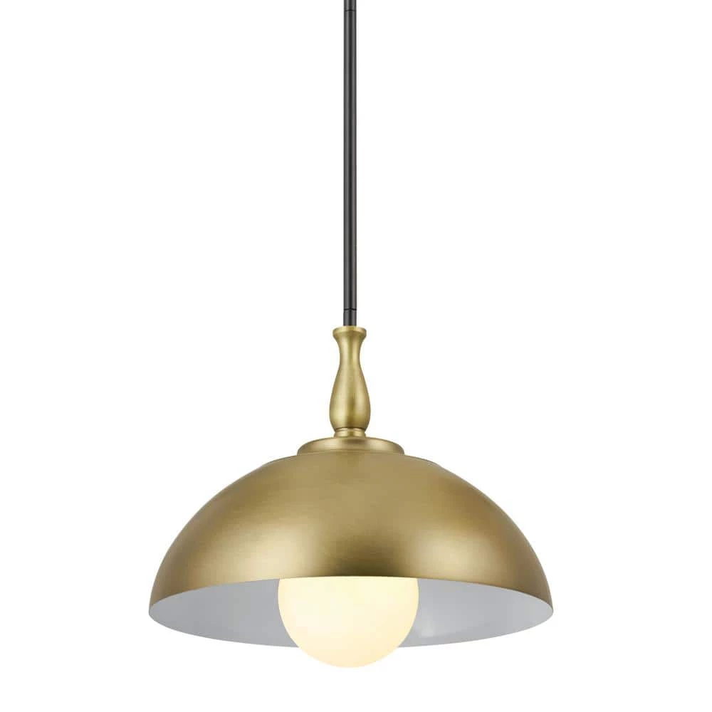 Inspired by the decorative spindles of antique furniture, the Fira collection celebrates traditional artistry. with warm dual finishes, Fira gives your space a cozy and elegant feeling. Celebrate traditional artistry with the Fira 14 inch 1 light pendant. The decorative spindle in Natural Brass resembles the spindle of antique furniture and its Black shade gives it a rich vintage look. Adjust its height to your space.