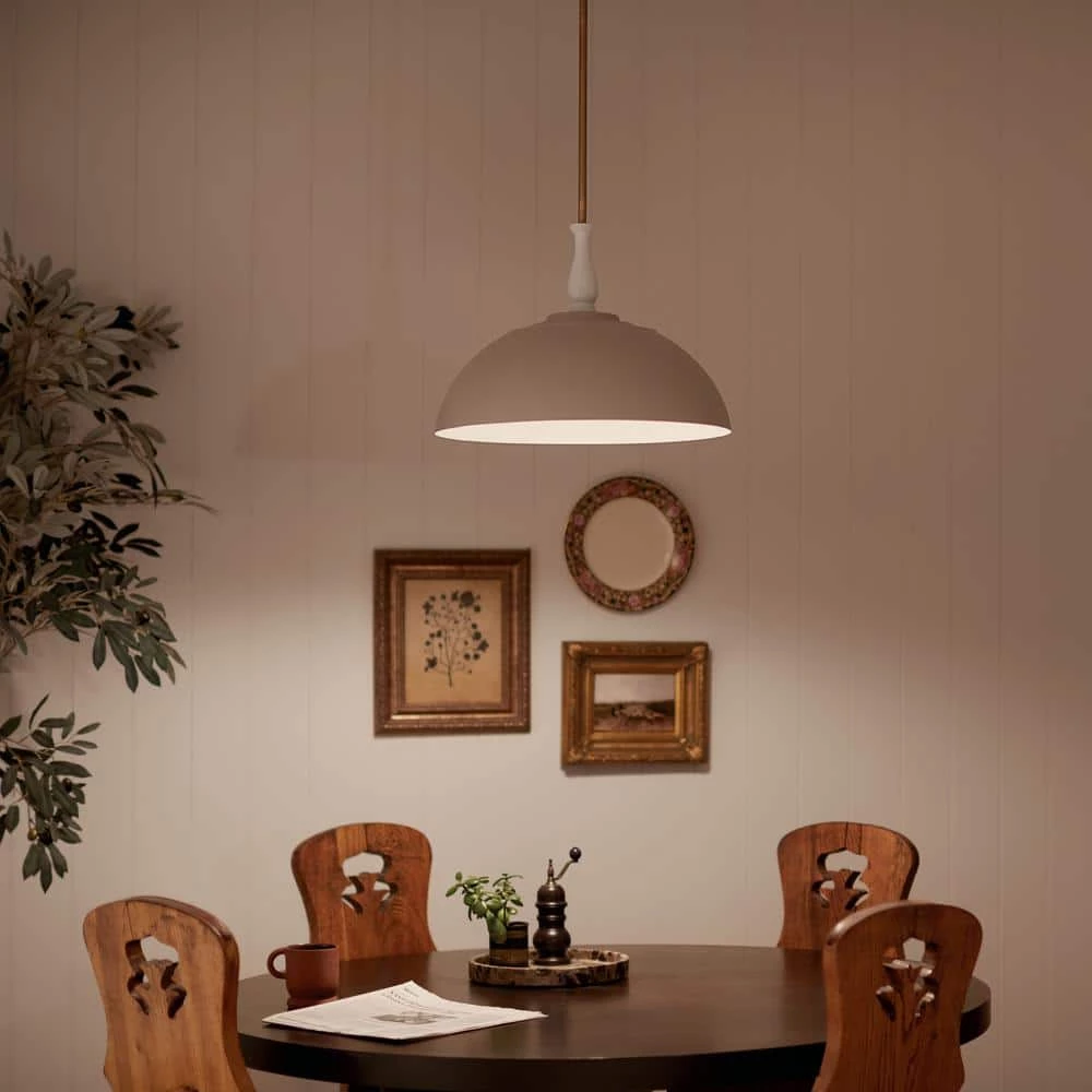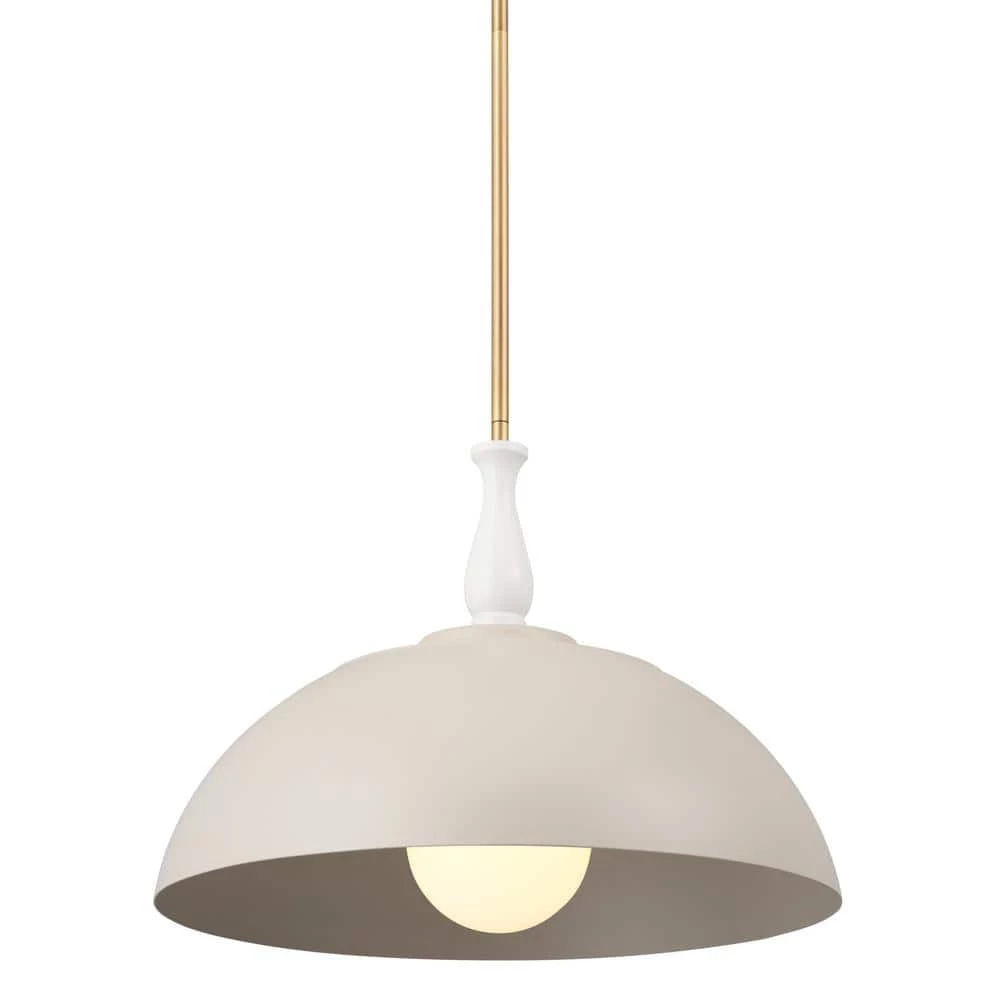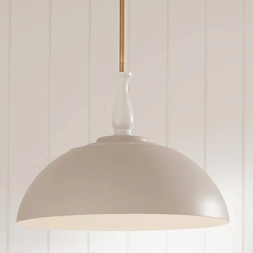 Inspired by the decorative spindles of antique furniture, the Fira collection celebrates traditional artistry. with warm dual finishes, Fira gives your space a cozy and elegant feeling. Celebrate traditional artistry with the Fira 18 inch 1 light pendant. The decorative White spindle and Natural Brass stem resemble antique furniture legs. Its Greige shade connects with an accenting White detail. Adjust its height to your space.