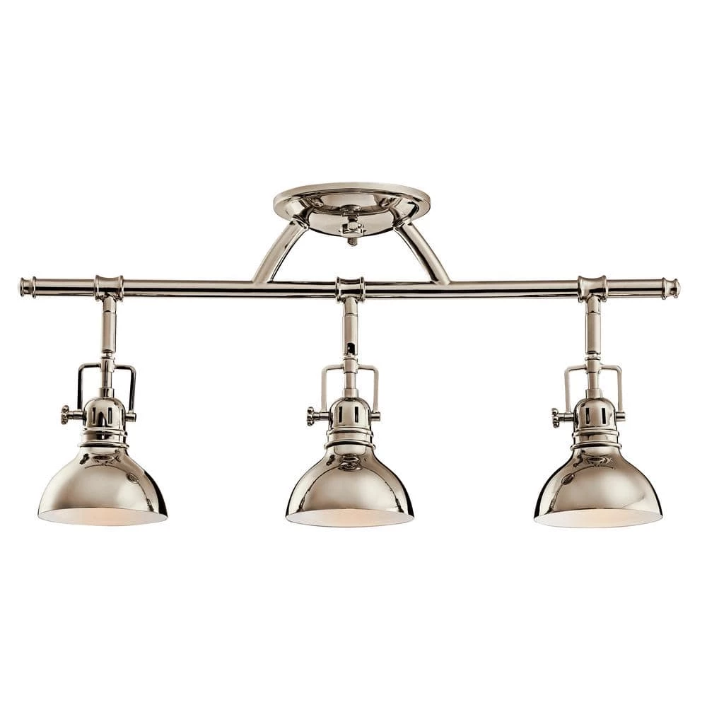The KICHLER Hatteras Bay 22.75 in. 3-Light Polished Nickel Halogen Fixed Rail Light features a vintage design with metal detailing that accentuates any decor style. The lights can be adjusted to various angles to suit your needs, such as, highlighting an art-piece, casting a glow on your walls and mirrors, and so on. This rail light from KICHLER has a high-grade steel construction to enable lasting use. It is an ideal addition to your living room, dining room, bedroom, and more.