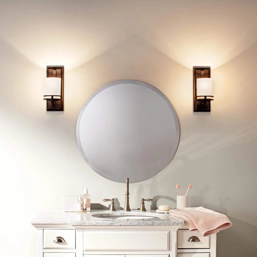 The KICHLER Hendrik 12 in. 1-Light Olde Bronze Wall Sconce features a light umber etched glass shade that provides soft lighting to your space. It has a steel frame for enhanced strength and durability. The wall sconce has an elegant bronze finish that blends well with most types of decors. This KICHLER wall sconce makes for an ideal lighting solution for the living room, bedroom or more.