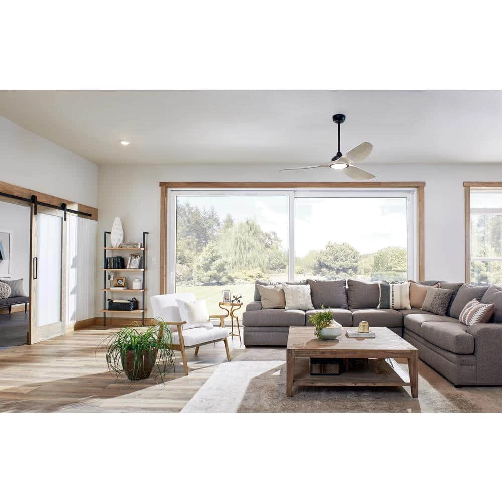 The KICHLER Imari 65 in. Fan features a propeller-style 3-blade design for a unique and sophisticated look. The dimmable LED light at its hub produces warm white illumination with a 2,300 Lumens output. This fan is UL/CSA certified for safe use in damp locations such as enclosed bathrooms and sunrooms.