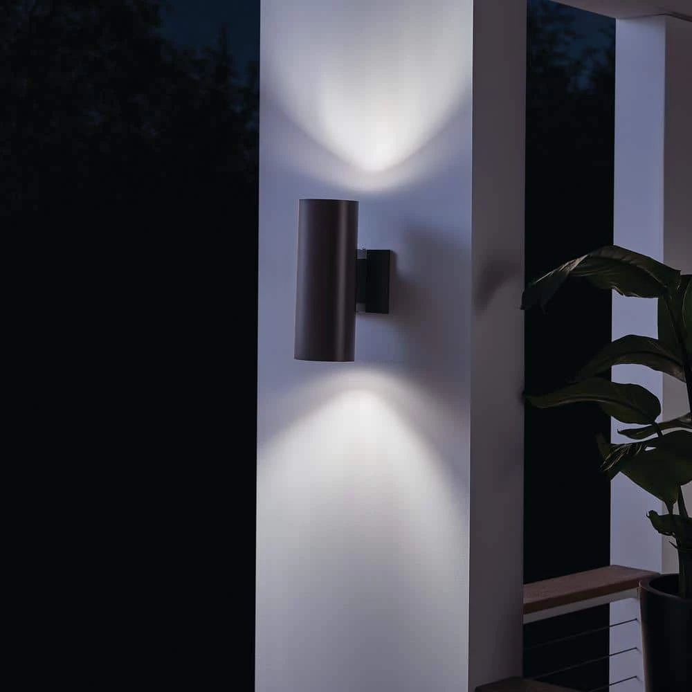 The KICHLER Cylinder 12 in. Architectural Bronze Wall Light sports a sleek design to match most outdoor decor options. This wall light has a sturdy aluminum frame that ensures durability and long-term use. The light is dimmable, so you can adjust brightness as per your preference. It is UL listed for safe use in damp locations.