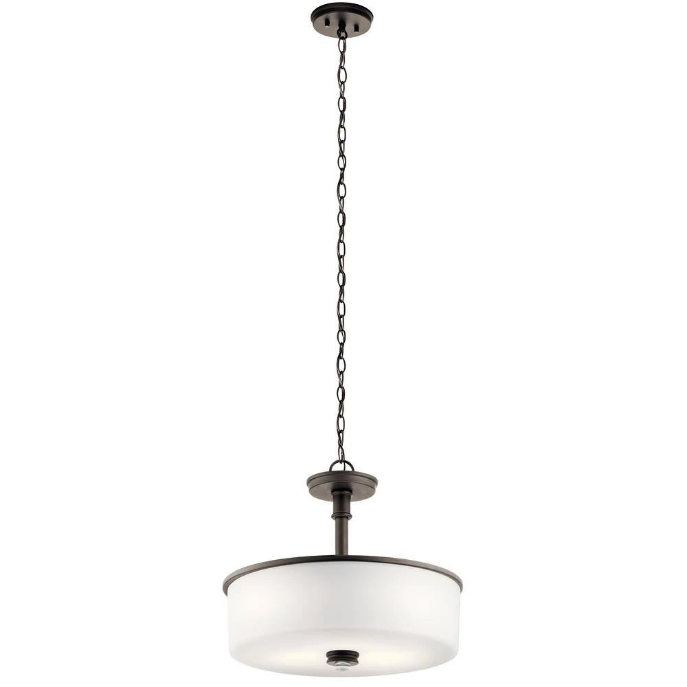 The KICHLER Joelson 17.75 in. 3-Light Olde Bronze Convertible Pendant Light lets you create 2 different lighting options. The customizable design of this light lets you install this light as semi-flush mount or have it suspend from the ceiling on a chain. It features a retro-inspired bulb socket with satin etched white glass diffuser to provide a soft glow to your room. This simple yet elegant pendant light from KICHLER makes for an ideal lighting option for your living room, bedroom or more.