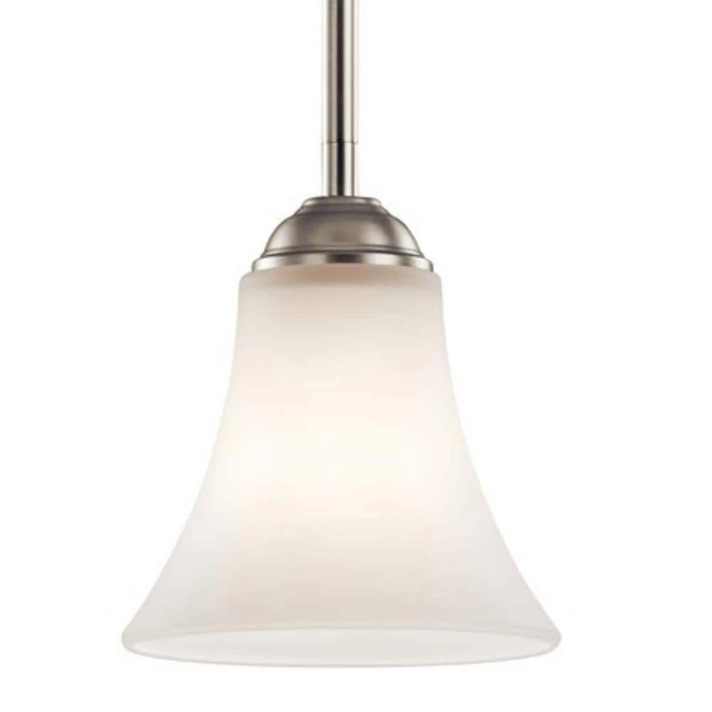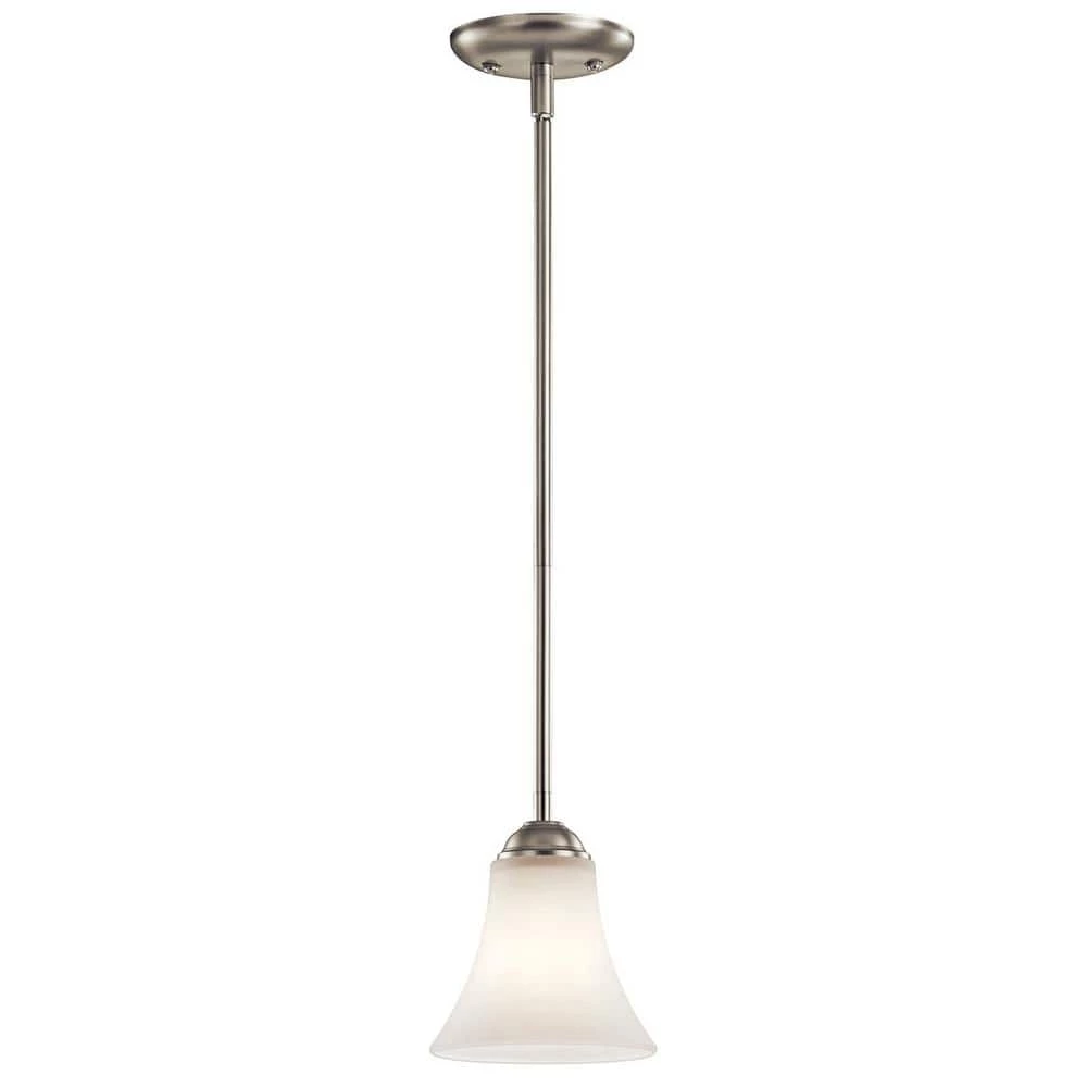 The Kichler Keiran 6.75 in. 1-Light LED Brushed Nickel Mini Pendant Light adds a sleek accent to your room decor. It features satin etched glass diffuser to provide soothing ambient lighting to your space. With its brushed nickel finish, this mini pendant light complements several types of interior arrangements and decor.