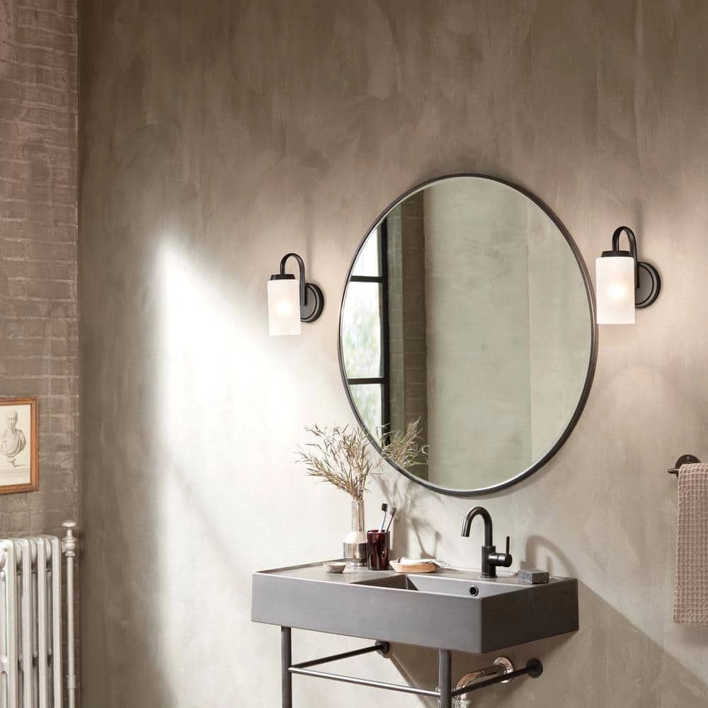 - Hang this sconce up or down, on either side of your bathroom’s vanity mirror, to direct the light exactly where you want it