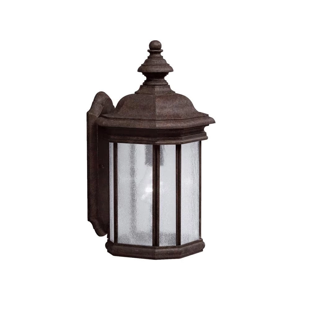 The Kichler Kirkwood 17 in. 1-Light Tannery Bronze Outdoor Wall Light features a classic design that adds an elegant touch to your space. Its clear seeded glass panels provide bright, ambient illumination. This outdoor wall light is constructed from cast aluminum for strength and durability. It is ideal for your porch, patio, deck, and balcony.