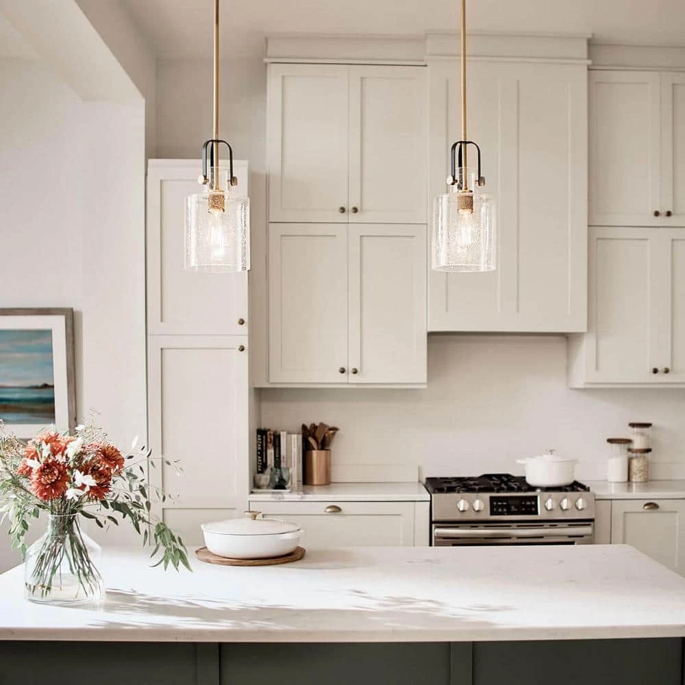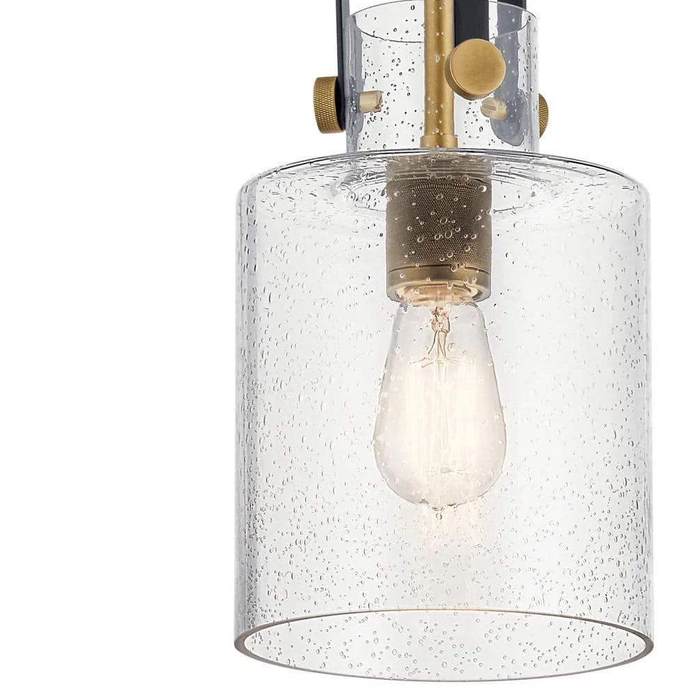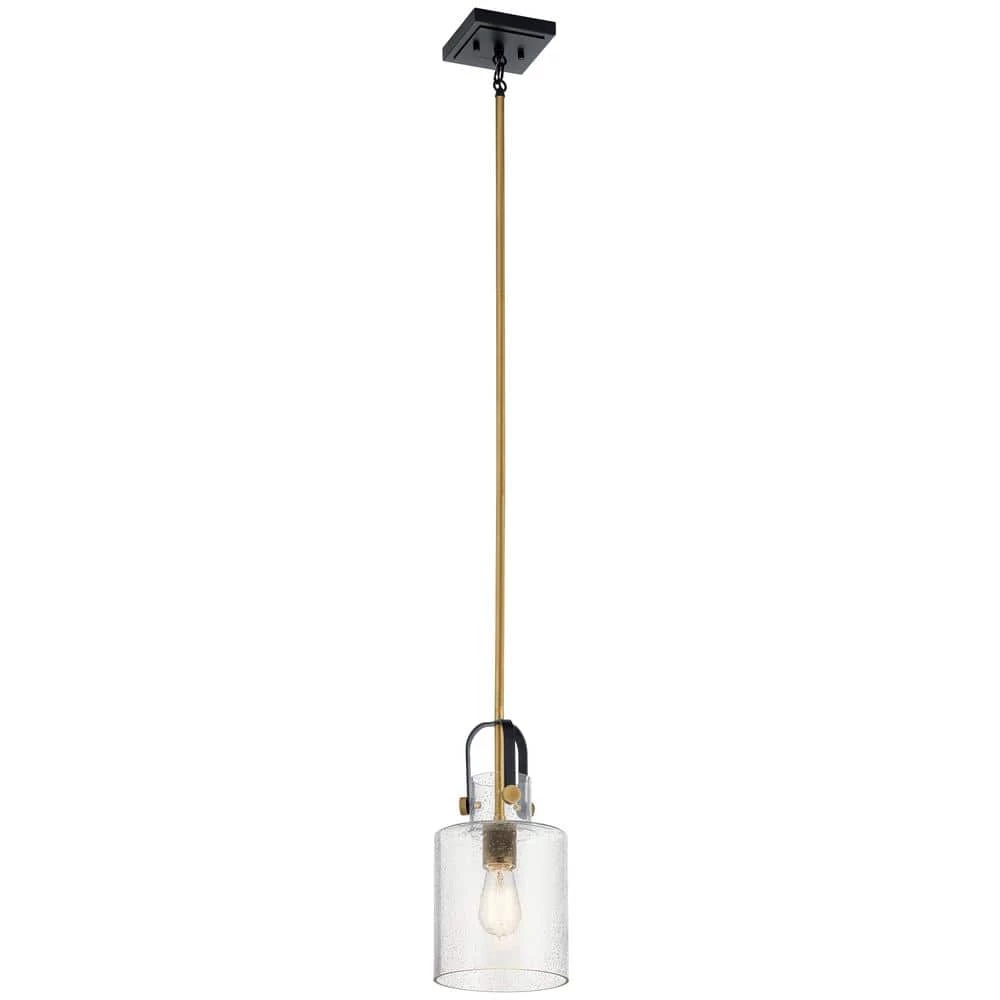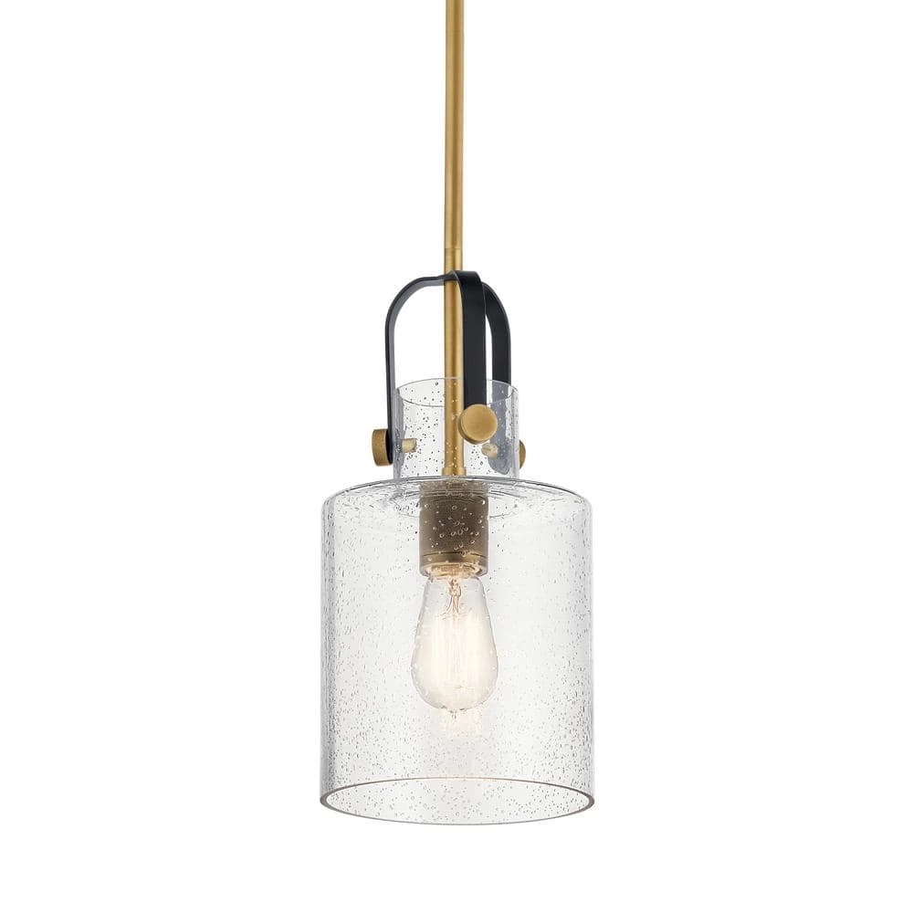 Brighten up your space with the KICHLER Kitner 7 in. 1-Light Natural Brass Pendant Light. It features a clear seeded glass diffuser that emits a warm, ambient glow. With its natural brass finish, this pendant light lends an industrial feel to your room decor.
