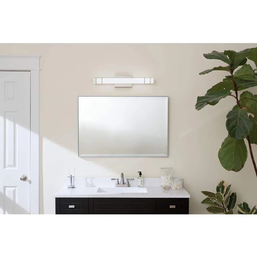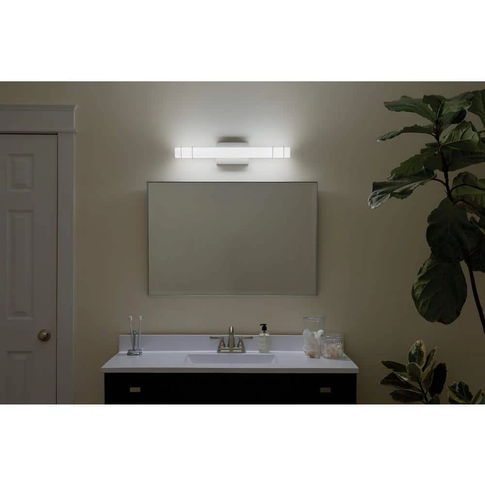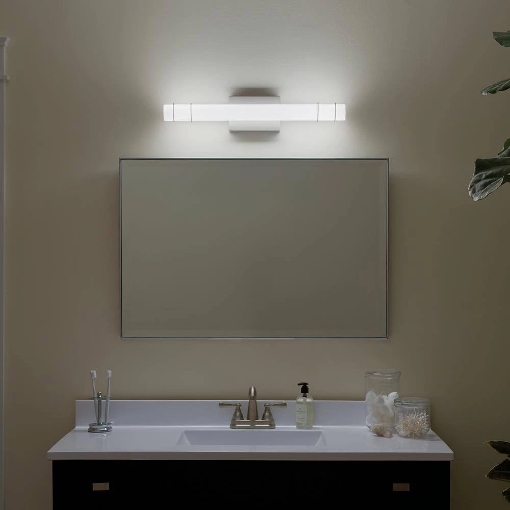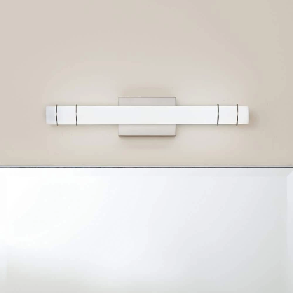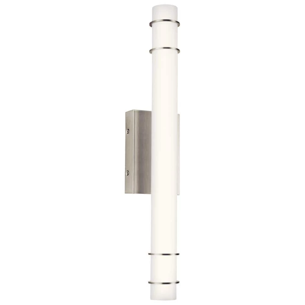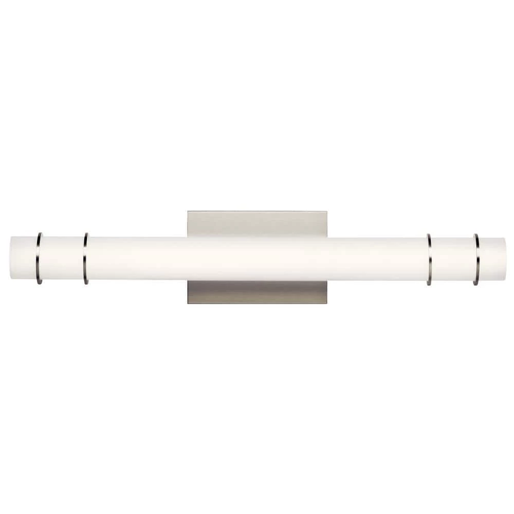 The KICHLER Korona 24 in. Brushed Nickel LED Linear Vanity Light features a white acrylic diffuser with rings for an enhanced visual appeal. For customized lighting in the room, this light is dimmable as per your requirements. This vanity light comes with LED bulbs that allow for energy-efficient use.